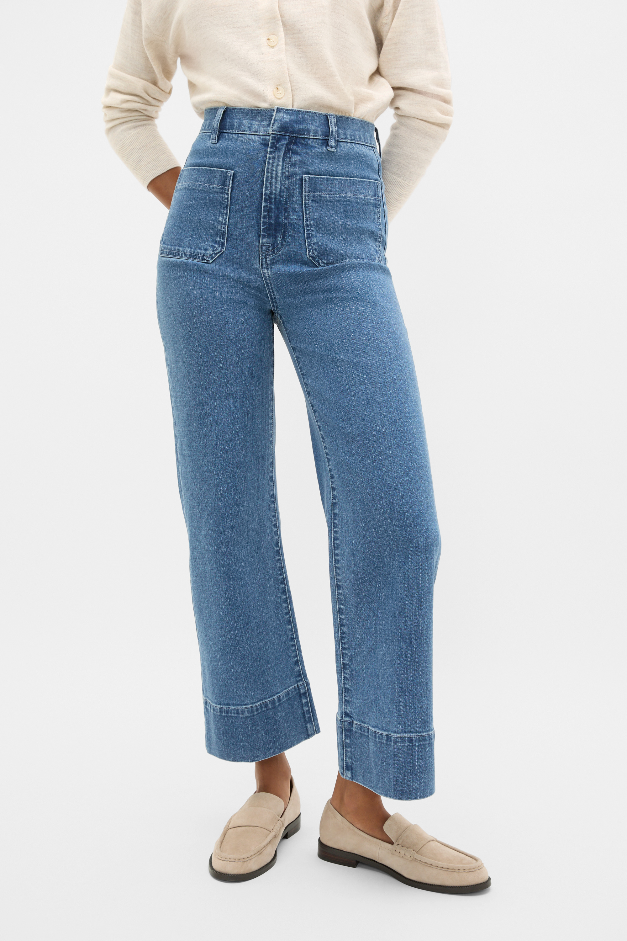 A classic design for effortless cool, these wide-leg jeans add a retro feel to your casual outfits. Crafted from premium cotton, they feature patch pockets and a slightly cropped length.