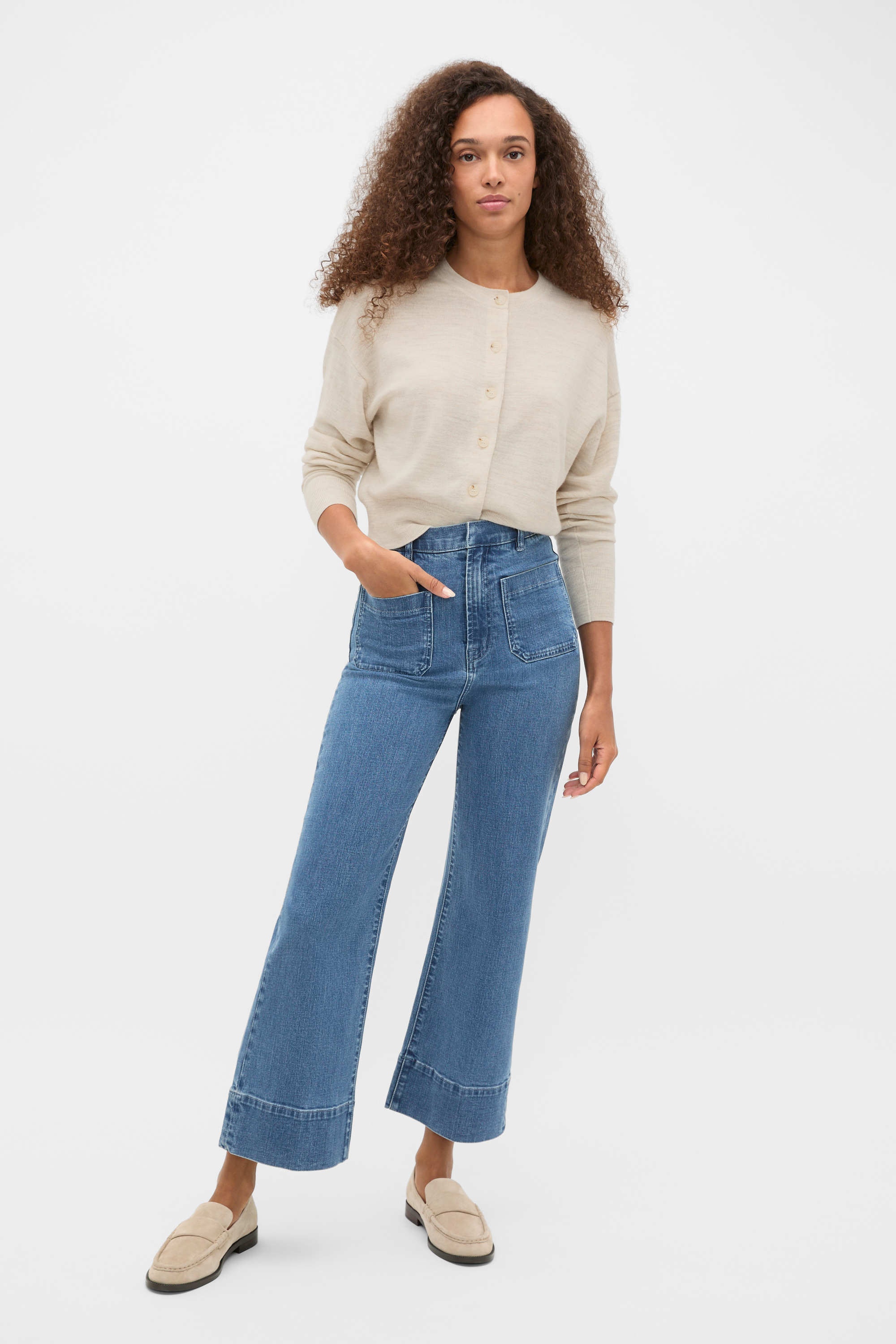 A classic design for effortless cool, these wide-leg jeans add a retro feel to your casual outfits. Crafted from premium cotton, they feature patch pockets and a slightly cropped length.