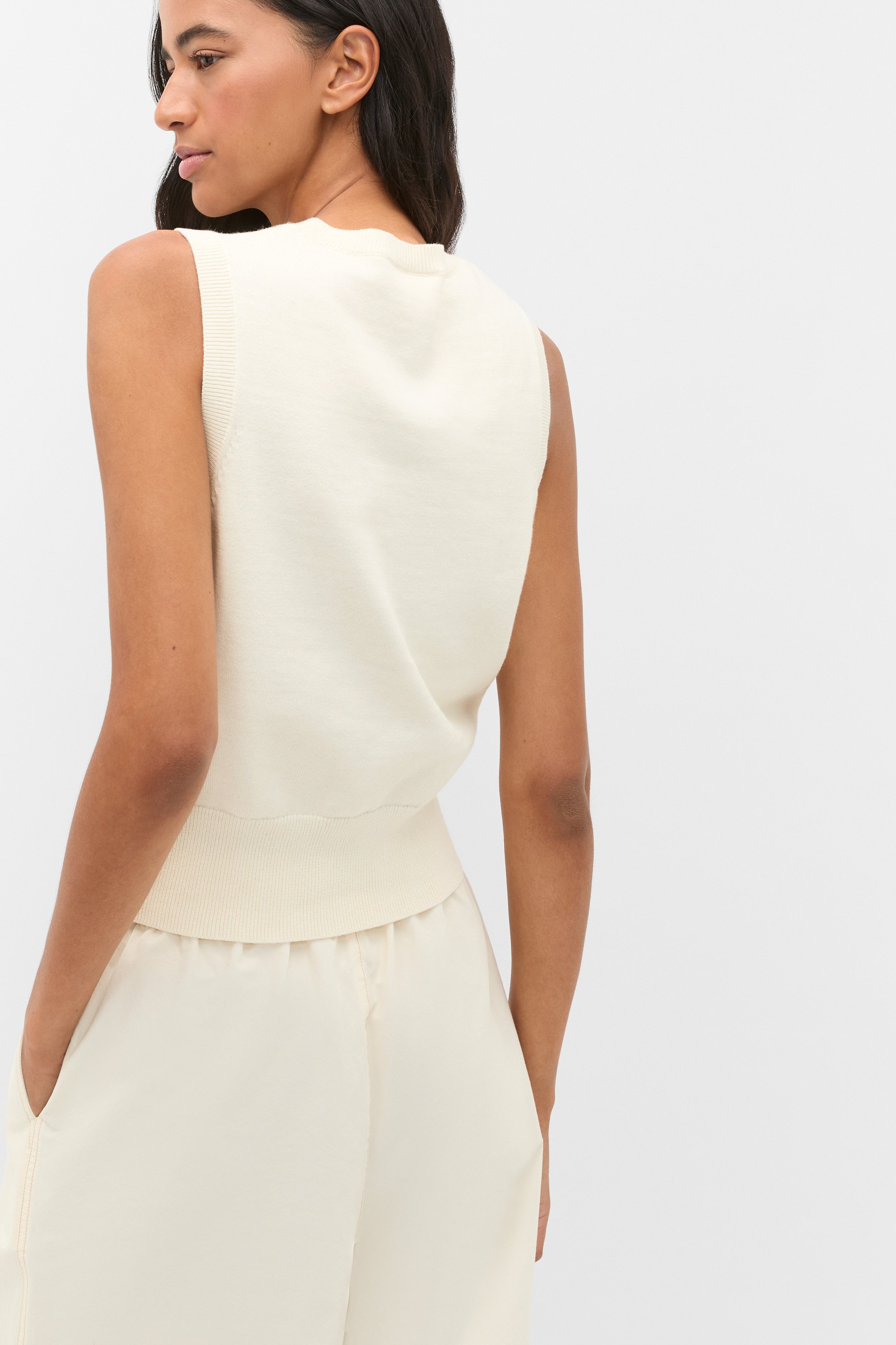 Cotton Blend Button Knit Vest  Coconut Cream  hi-res