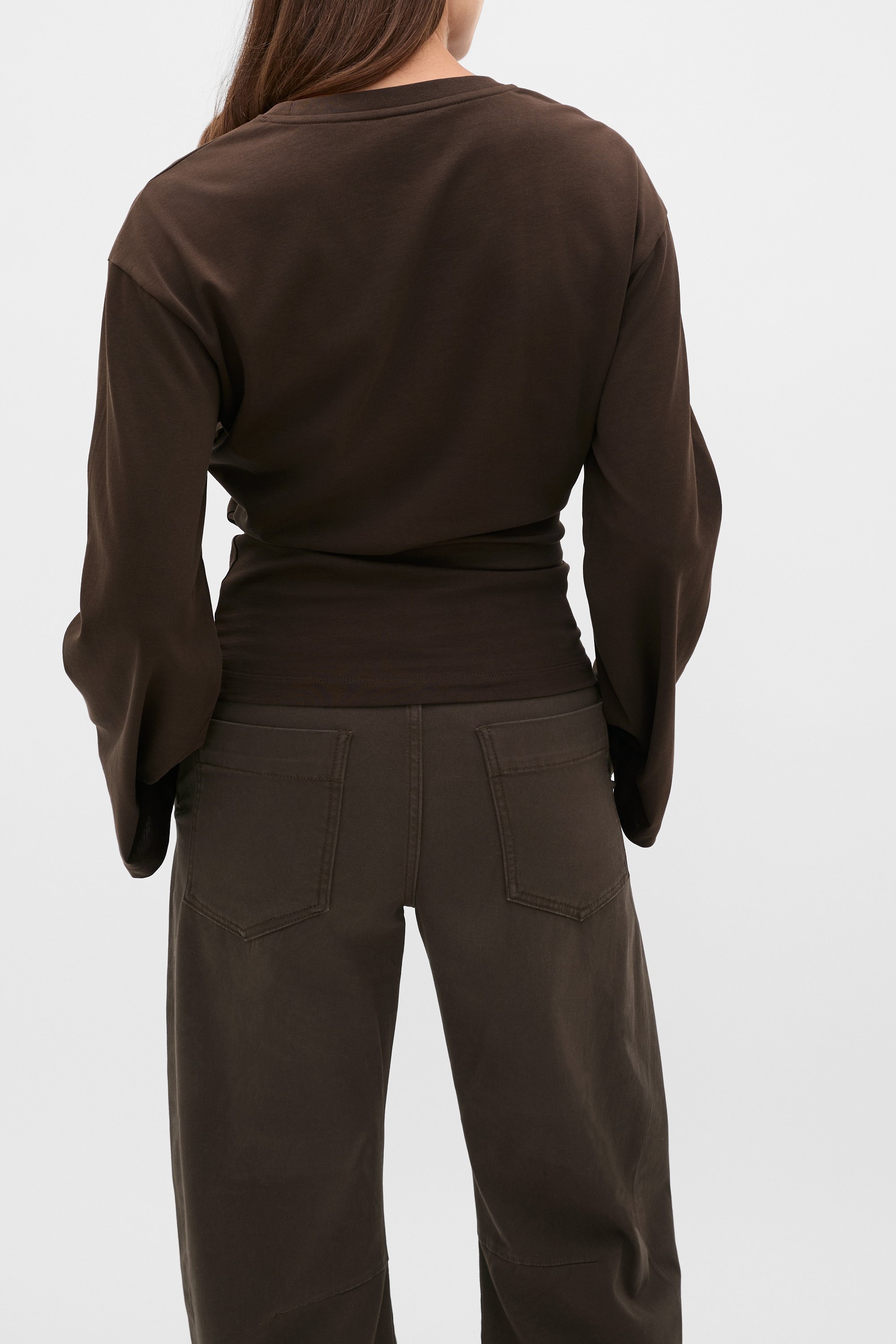 Cotton Long Sleeve Waisted Top  Coffee Bean  hi-res Cotton Long Sleeve Waisted Top  Coffee Bean  hi-res Cotton Long Sleeve Waisted Top  Coffee Bean  hi-res Cotton Long Sleeve Waisted Top  Coffee Bean  hi-res