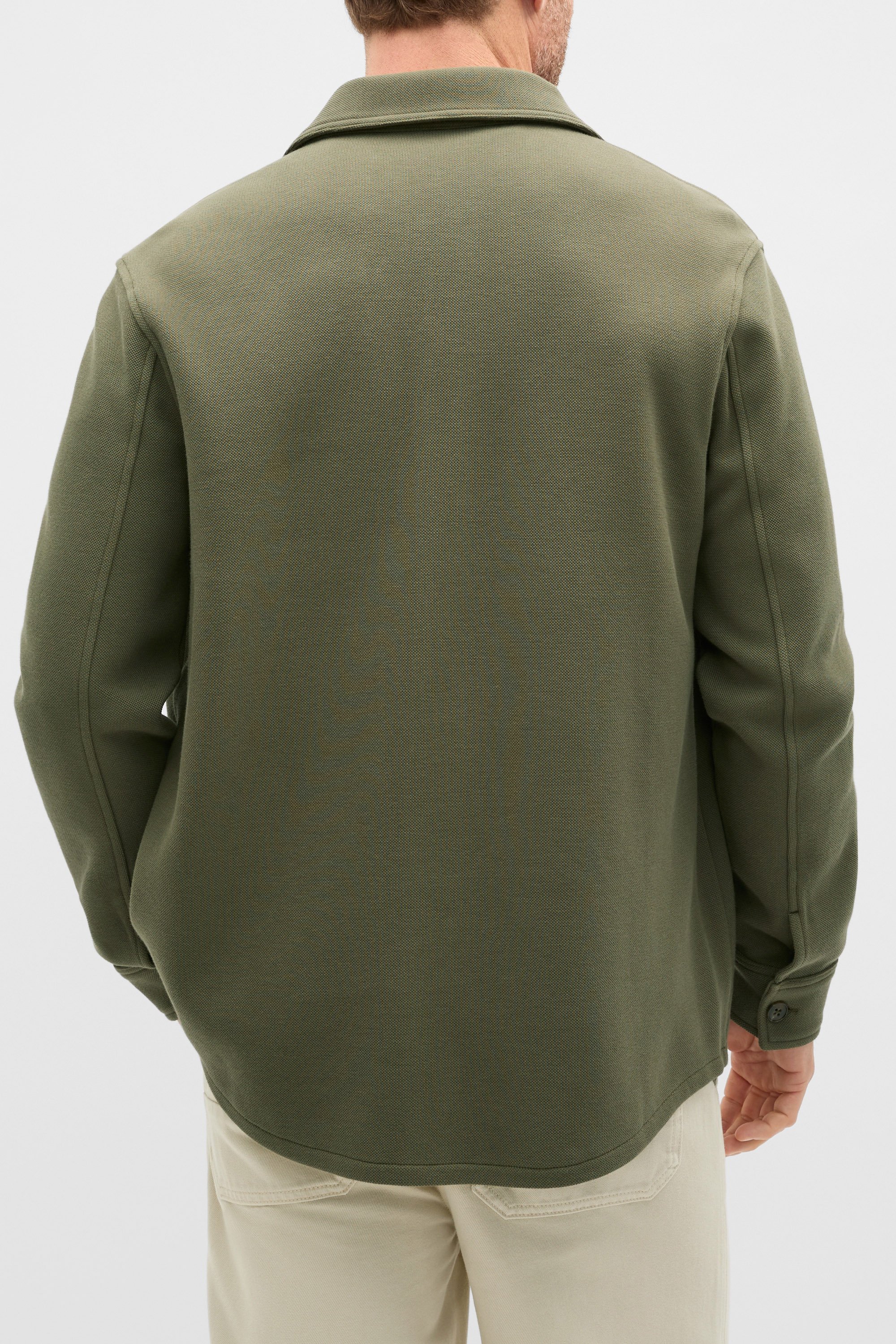 He'll master the art of styling with this pique overshirt: the perfect layer for the in-between seasons. Crafted in premium cotton with a knit finish and a little stretch, it features a collar, long sleeves, patch pockets and a button-through front. Pair with a tee, layer over knits, and find versatile outfitting with this classic design.