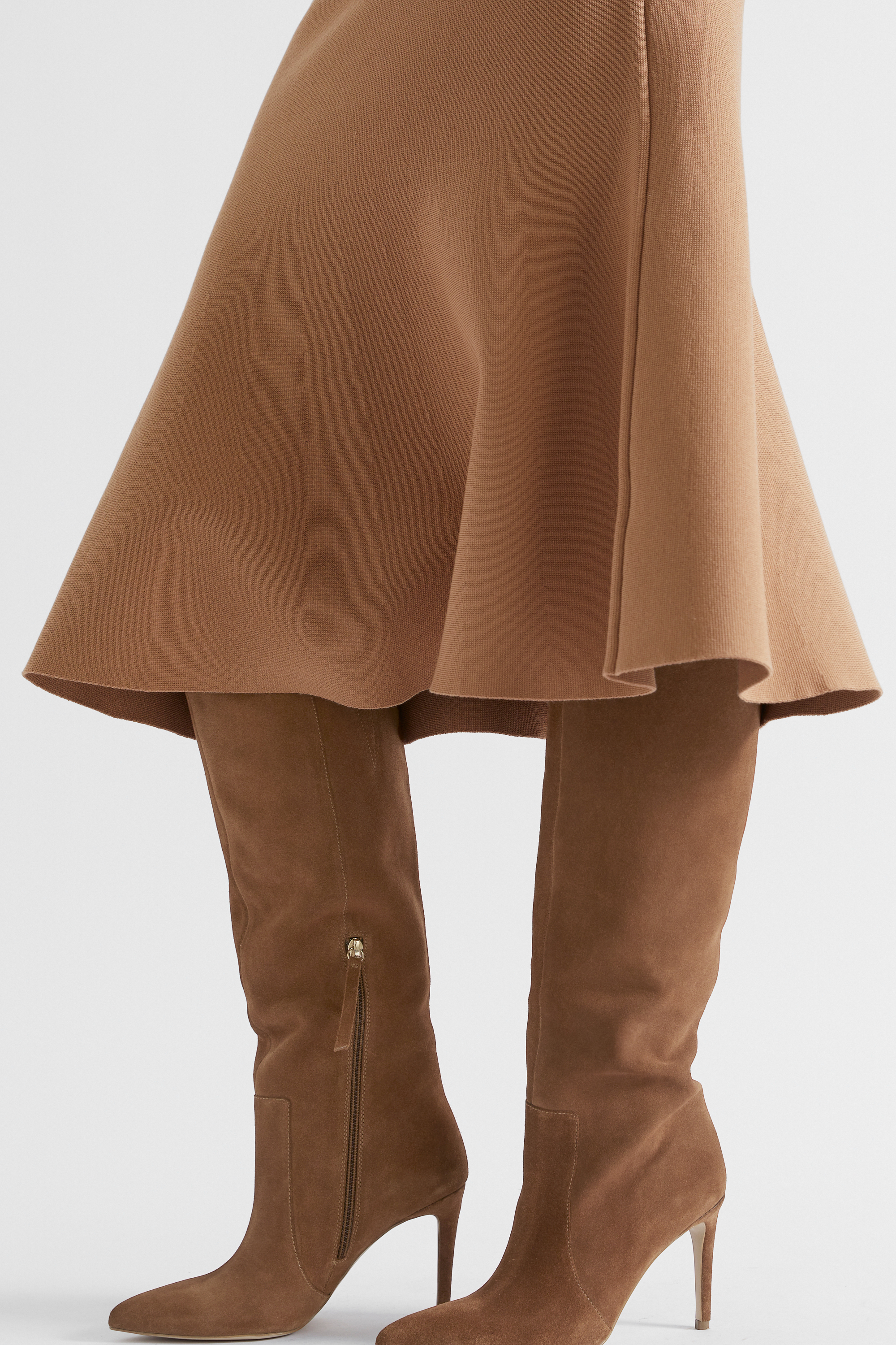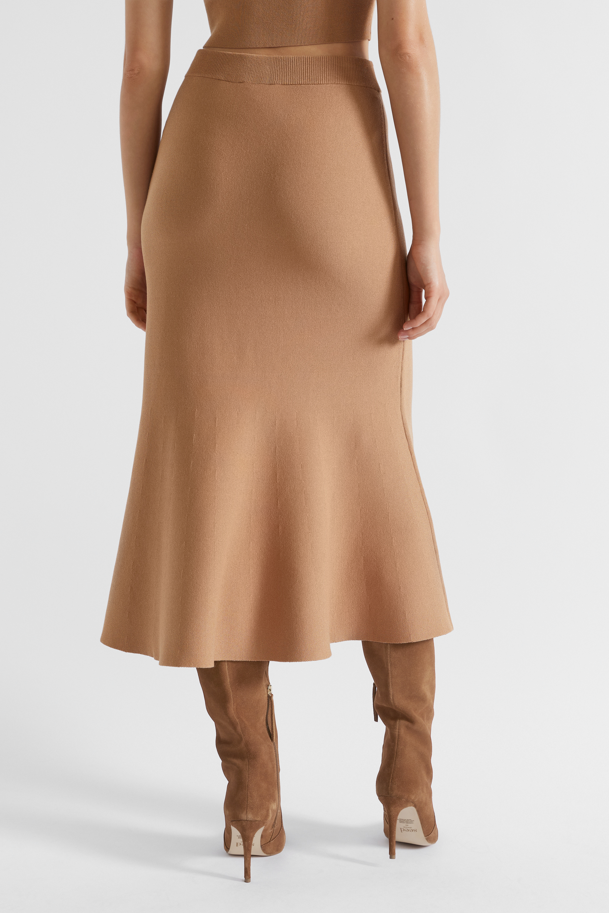 In a subtle fit-and-flare shape, this midi skirt will fit seamlessly into your wardrobe. It is crafted from a heavier weight knit, and features an elasticated waistband.