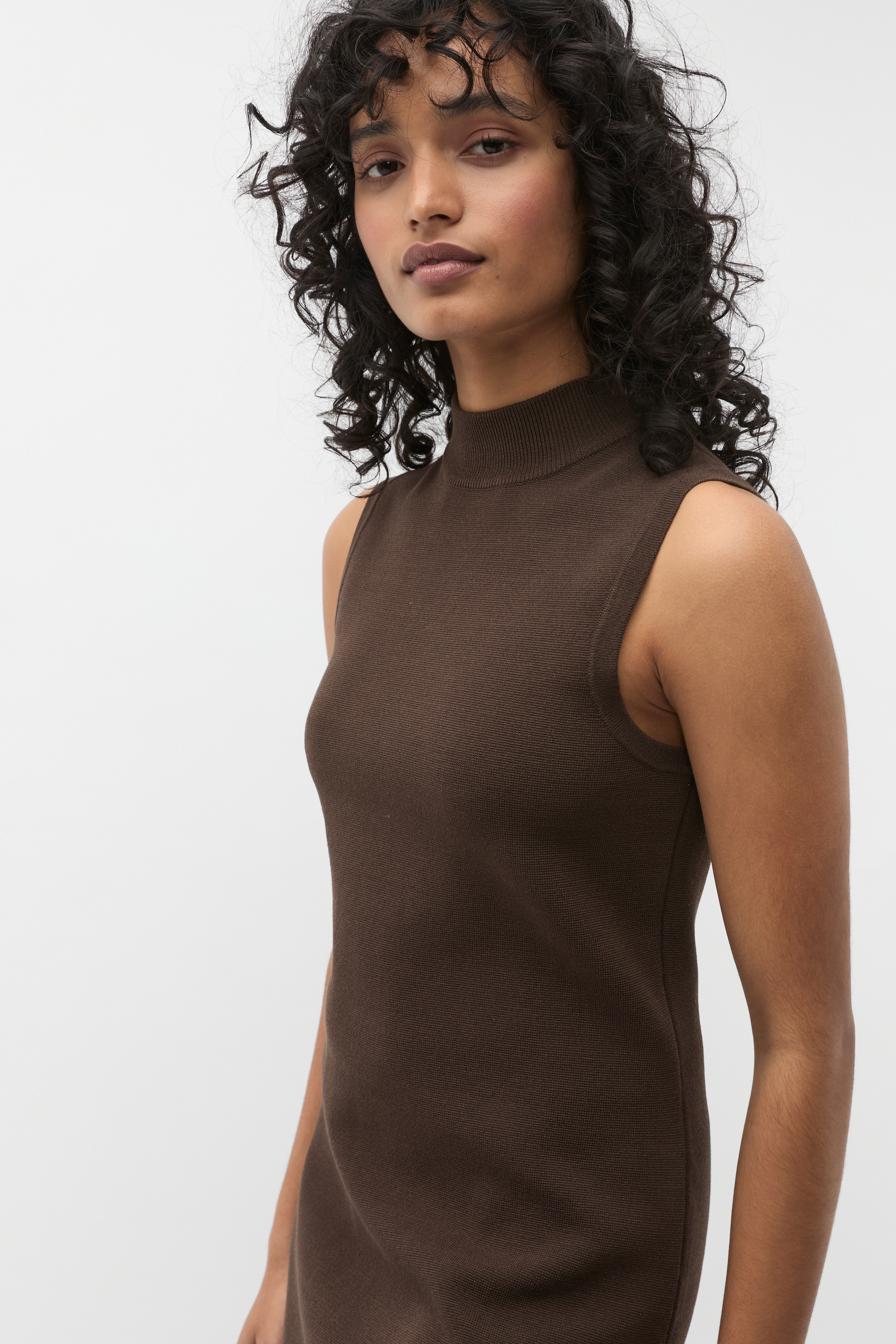Crepe Knit Mock Neck Mini Dress  Dark Espresso  hi-res