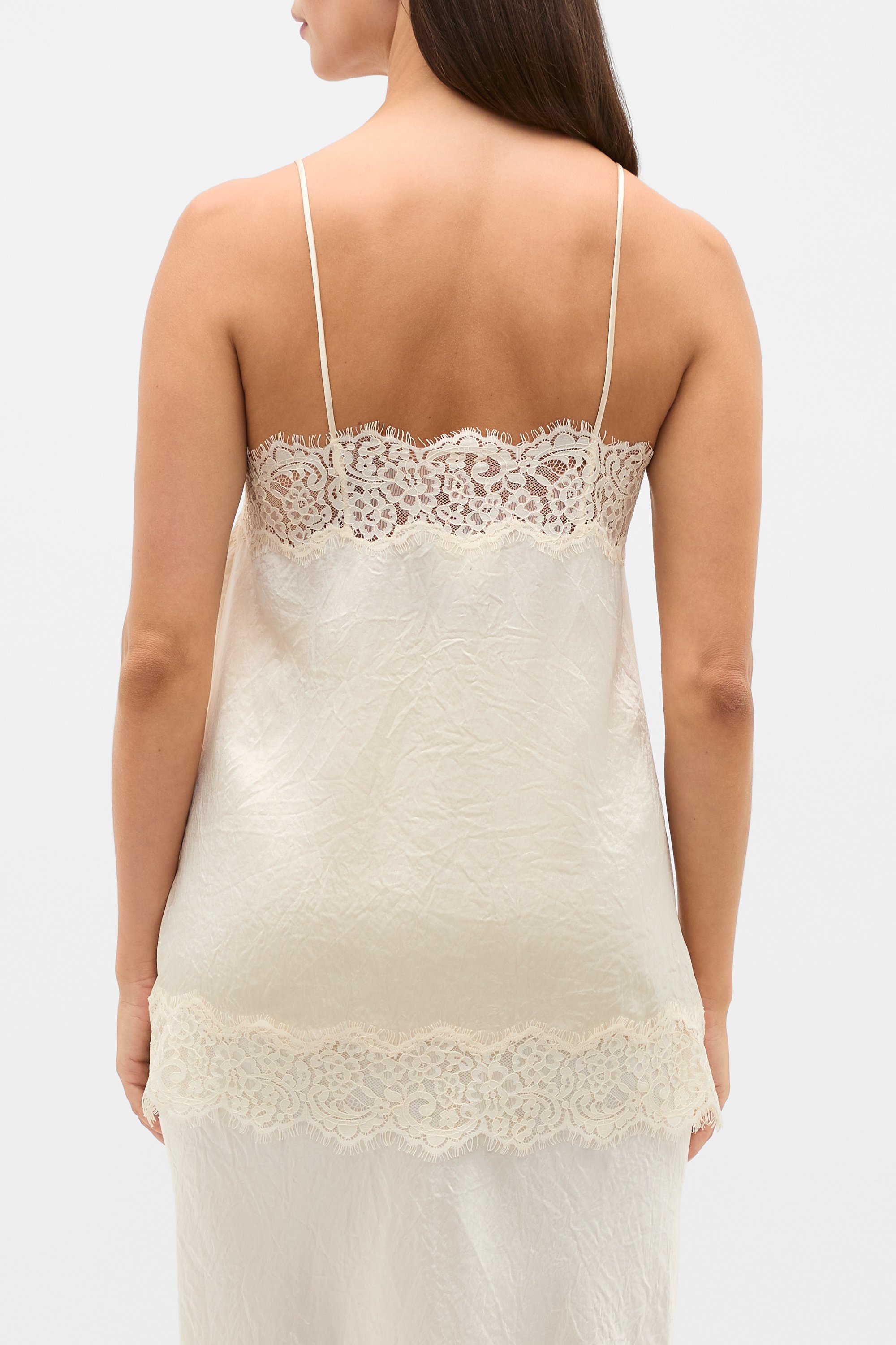 Crinkled Satin Lace Square Neck Cami