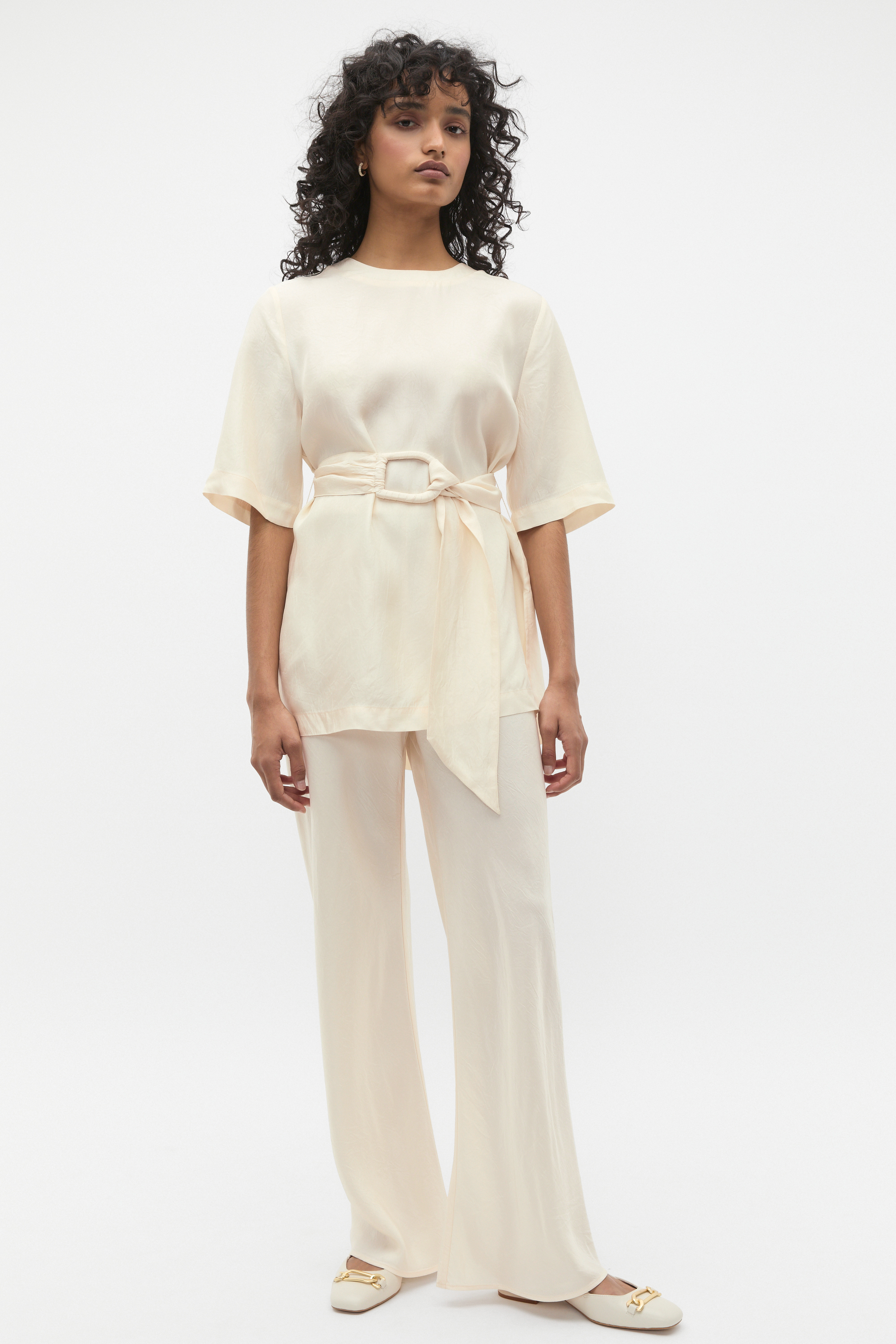 Soft and simple, these pants are finished in a crinkle satin for an elevated feel. They have an elasticated waistband and a straight leg shape. Style with the crinkle satin top for a head-to-toe curated moment.