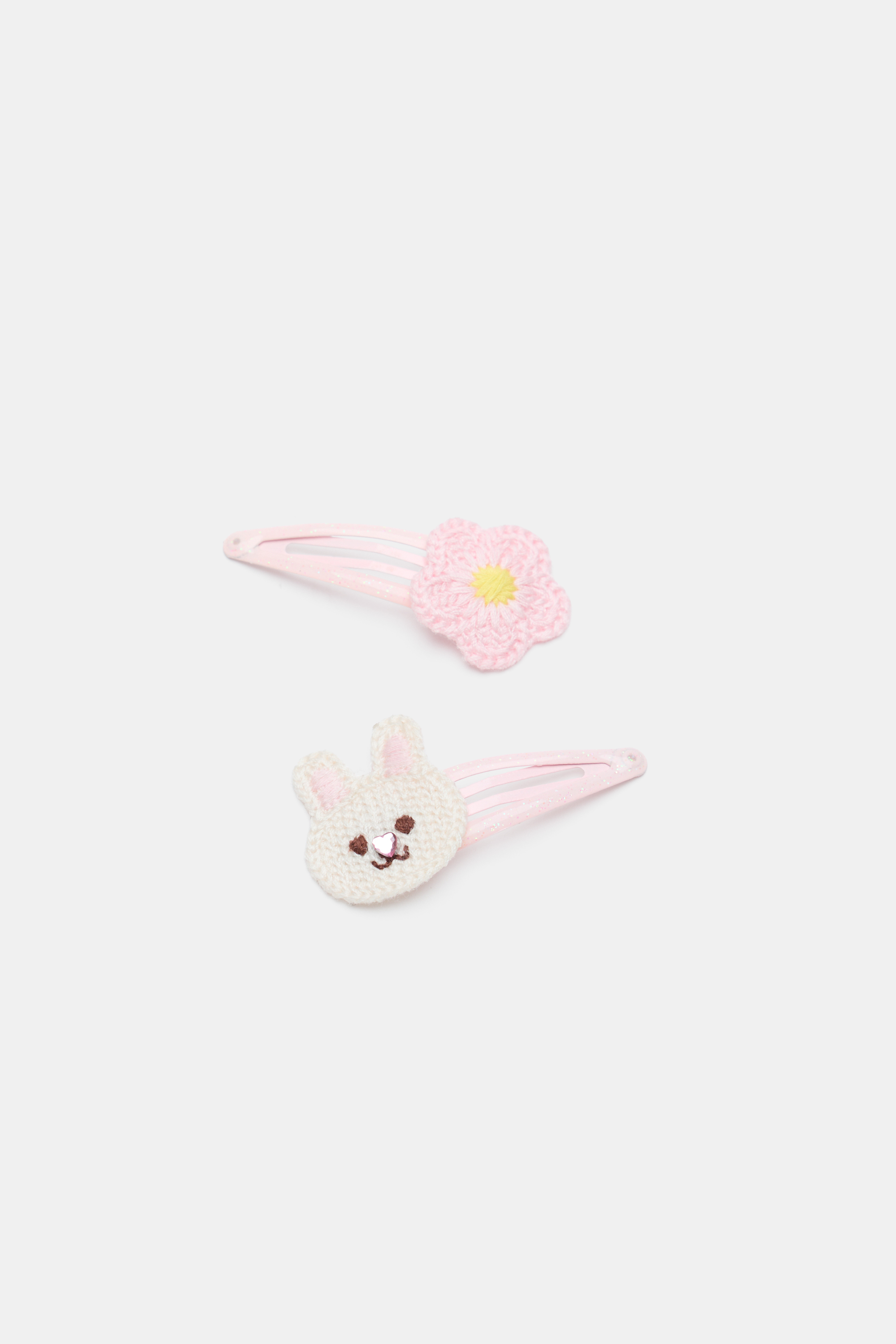 With the cutest crochet design, these hair snaps feature a bunny and a flower each on a glittery hair snap. This product is not a toy and is not suitable for children three years and under.