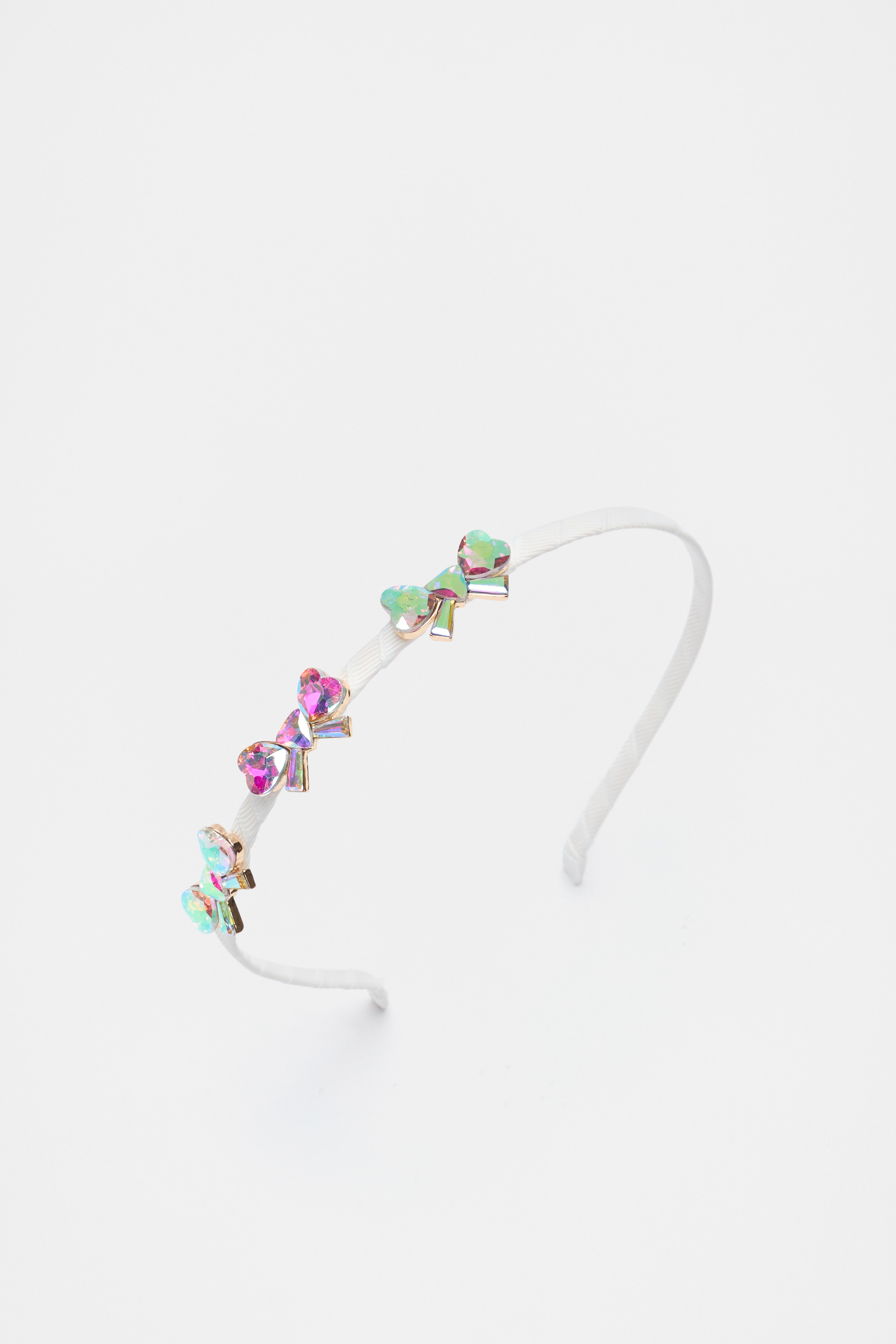 Add some shine to her look with this simple crystal heart headband. This product is not a toy and is not suitable for children three years and under.