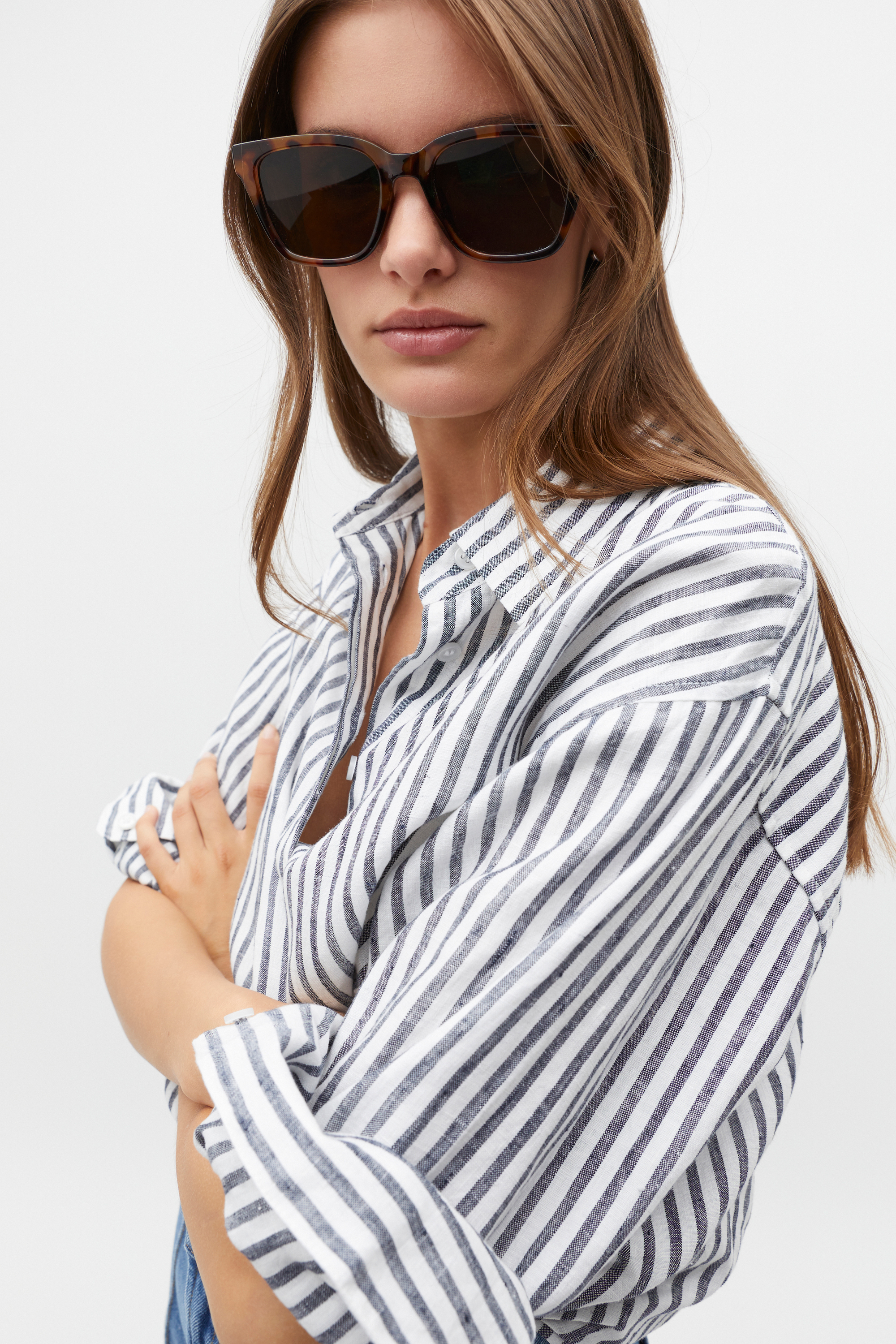 Turn heads with these classic frames, a chic option for summer. They feature a classic D frame, tinted lenses and gold-toned details. The lenses comply with the mandatory requirements for the Australian and New Zealand standards for Category 3 protection.