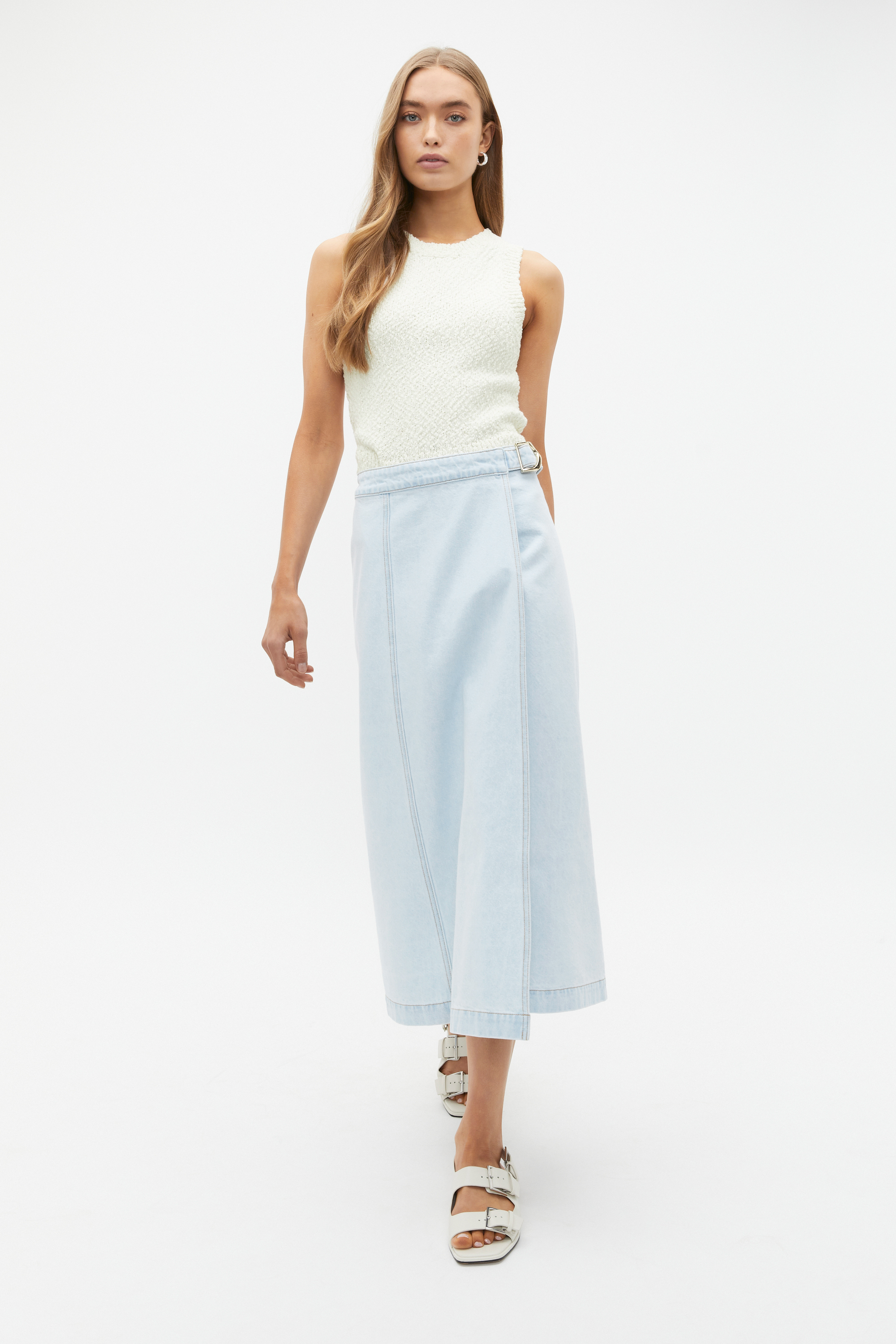 Denim Wrap Front Buckle Skirt  Stone Blue Wash  hi-res Denim Wrap Front Buckle Skirt  Stone Blue Wash  hi-res Denim Wrap Front Buckle Skirt  Stone Blue Wash  hi-res Denim Wrap Front Buckle Skirt  Stone Blue Wash  hi-res