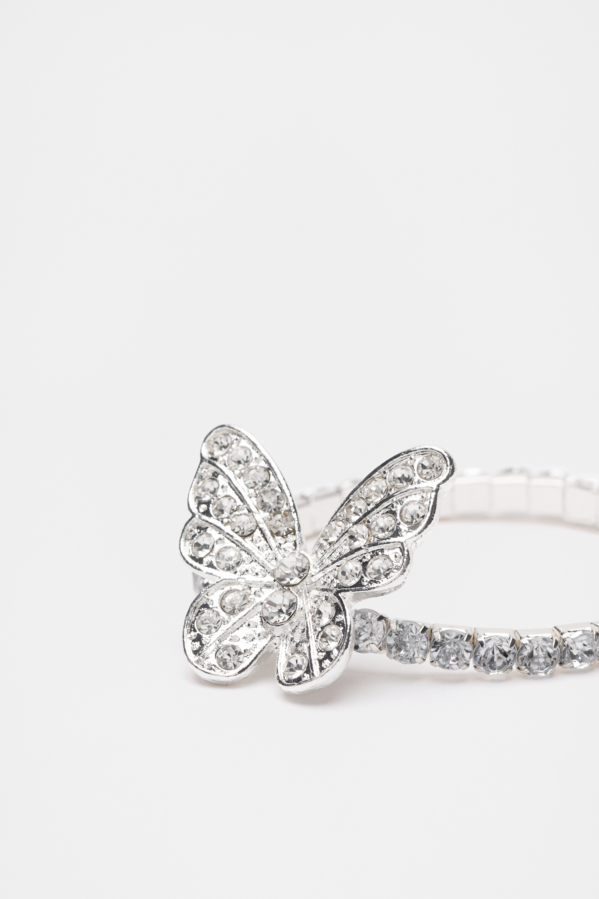 Add a hint of shine to her look with this diamante stretch bracelet, featuring a butterfly design. This product is not a toy and is not suitable for children three years and under.