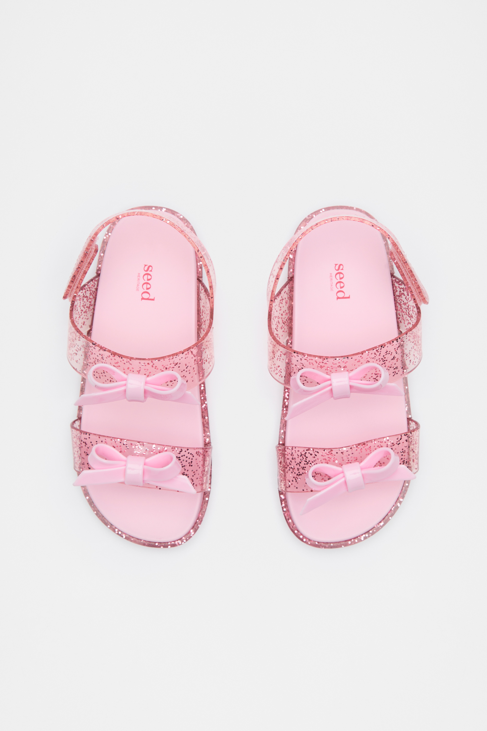 A playful summer essential, these sandals feature two glitter straps each with the sweetest bow detail and secure with a hook-and-loop closure. Crafted in a comfortable jelly, they're perfect for the beach or pool.