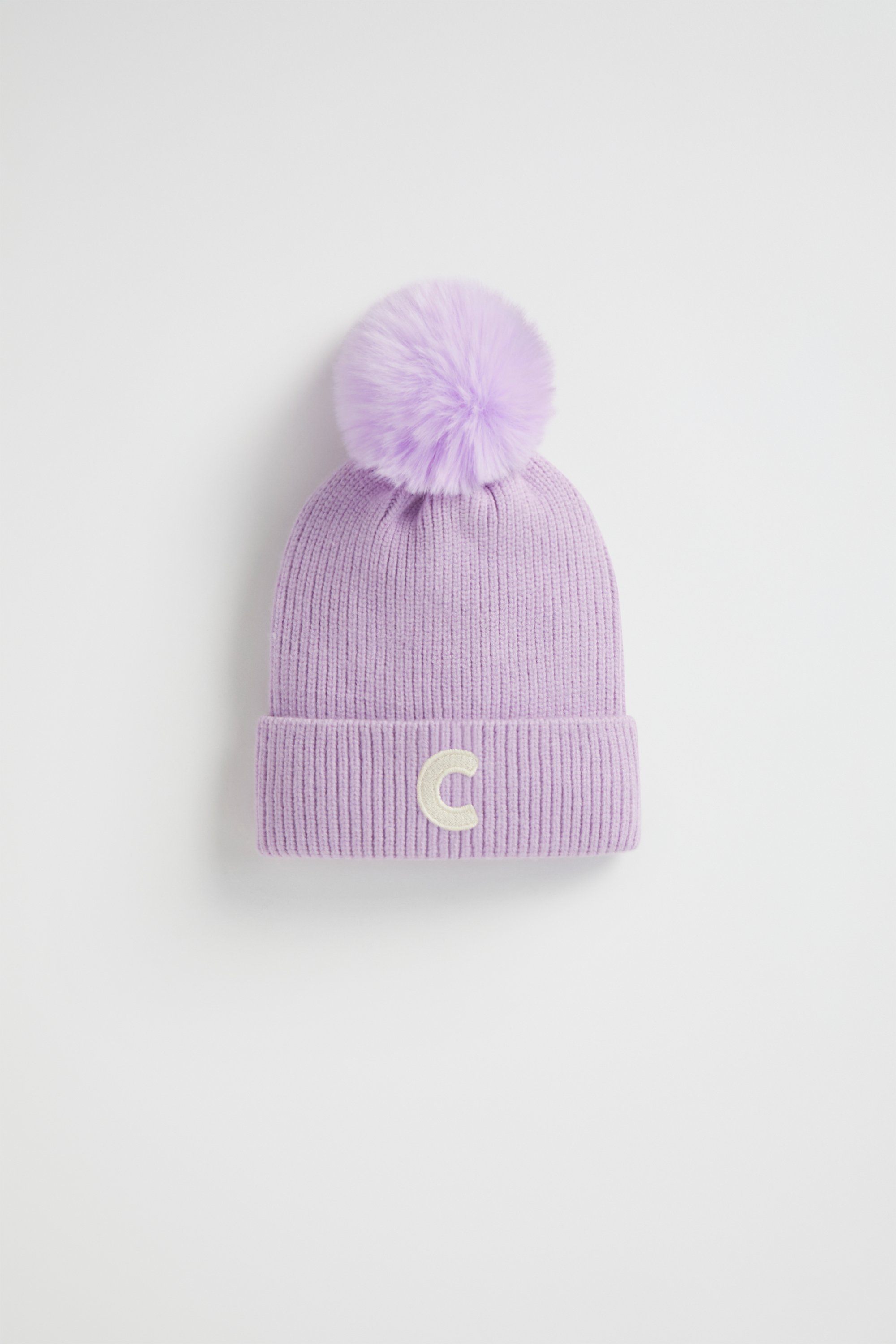 Add a personal touch to her outfit with this ribbed beanie, featuring a pom pom, a folded brim and an embroidered initial.
