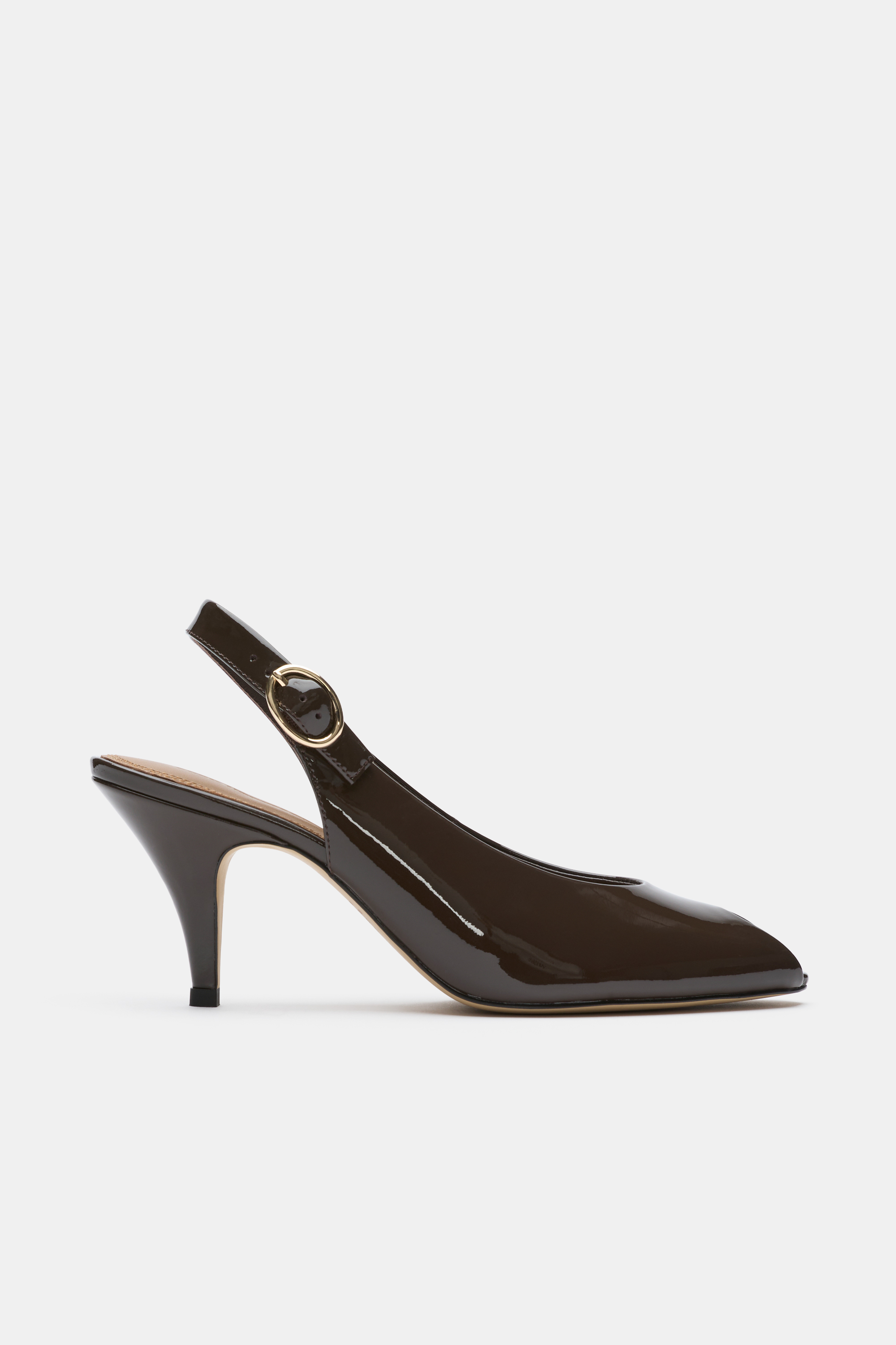 Modern, feminine and utterly essential, these heels belong in your wardrobe. Crafted with a premium leather upper and lining, they're a slingback style and feature an open peep-toe with a pointed shape and have an 8 cm heel height. Perfect to pair with your favourite workwear looks, or elevate your evenings out.