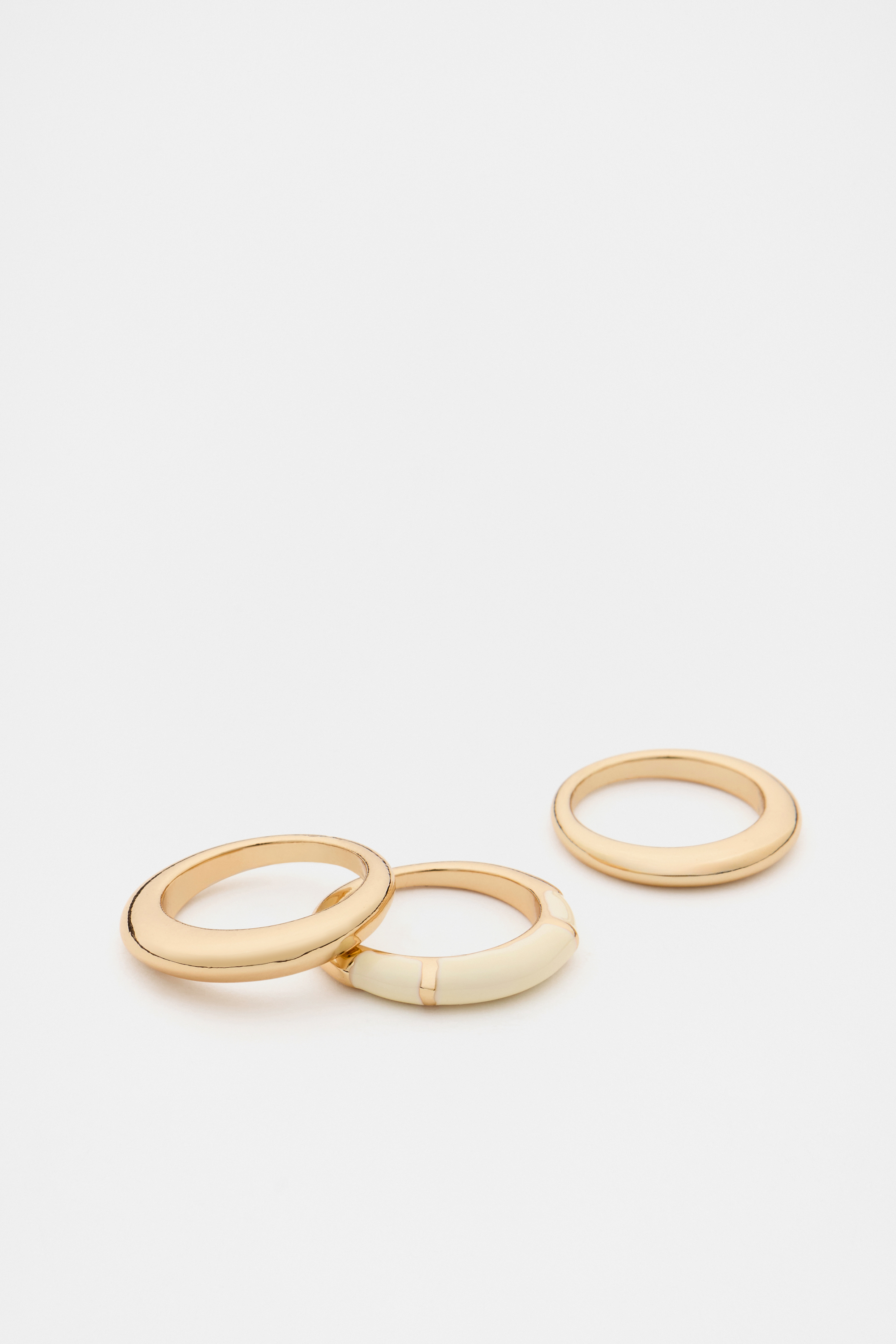 This set of rings, perfect for stacking, add a chic finishing touch to your head-to-toe look. Available in two different colours, this set includes three rings, one featuring an enamel design. Style with the coordinating earrings for a curated moment.