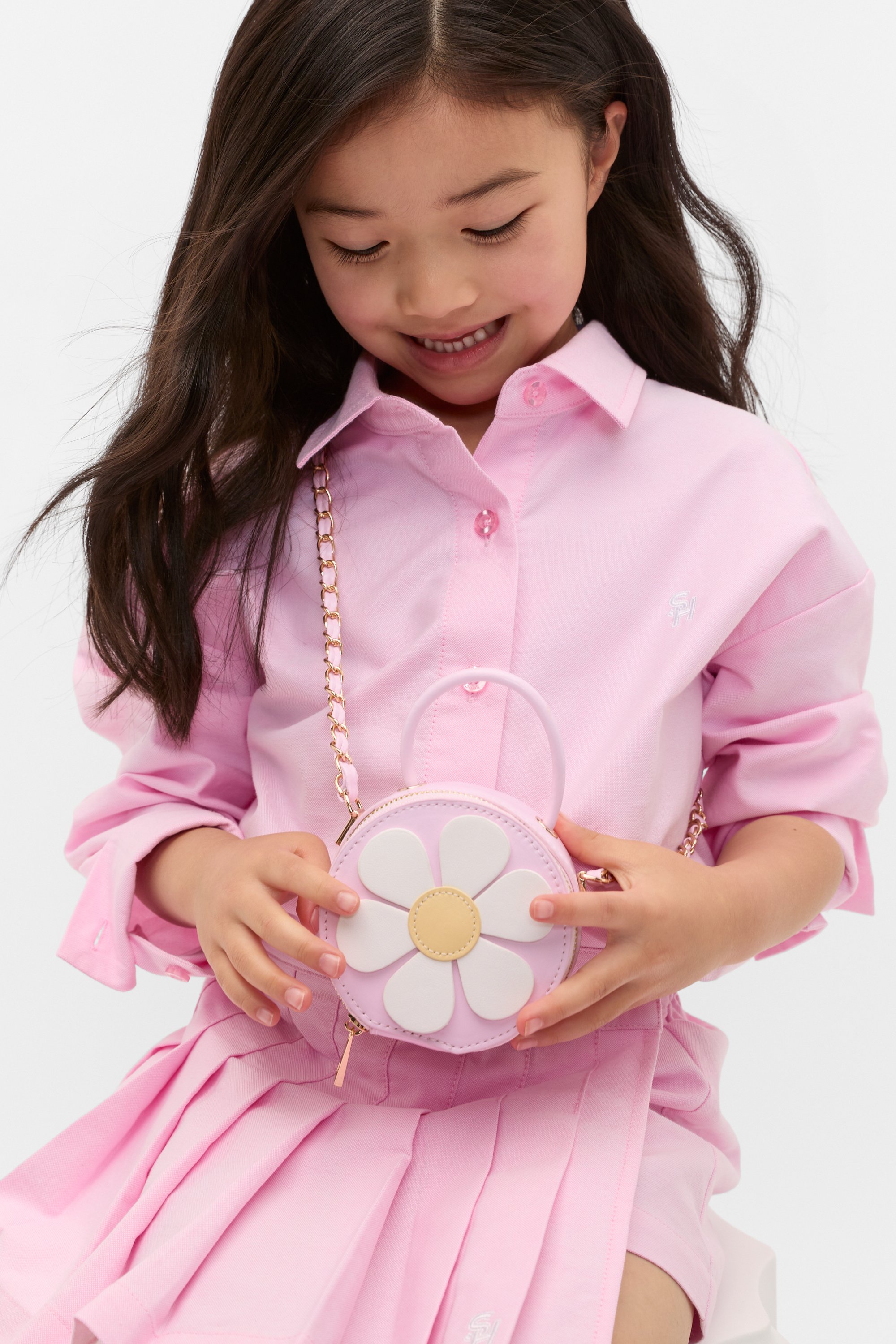 Sweet and playful, this mini handbag is set to become her new favourite accessory. It features a short carry handle and a braided chain crossbody strap.