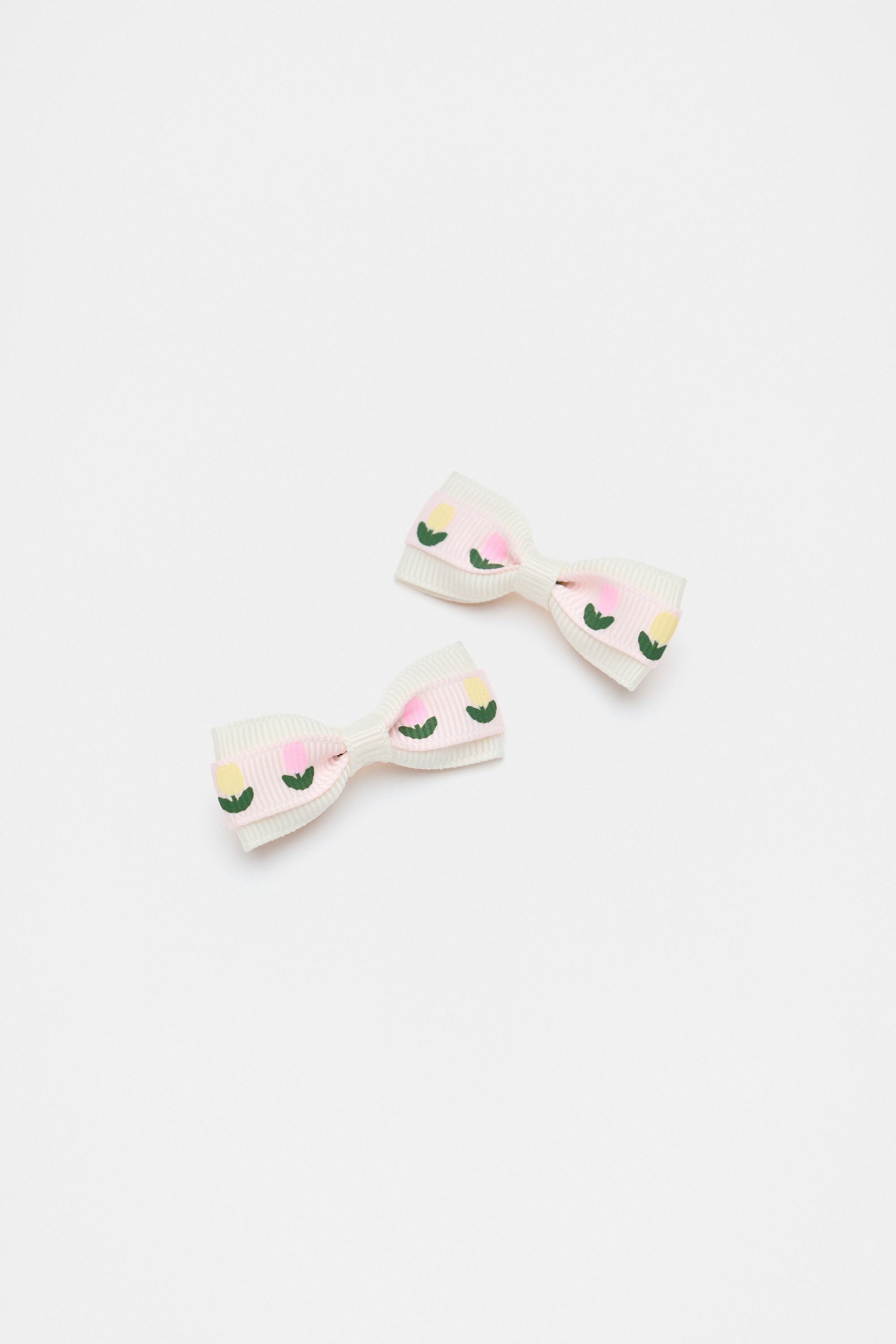 Flower Printed Bow Duck Clips  Cream  hi-res