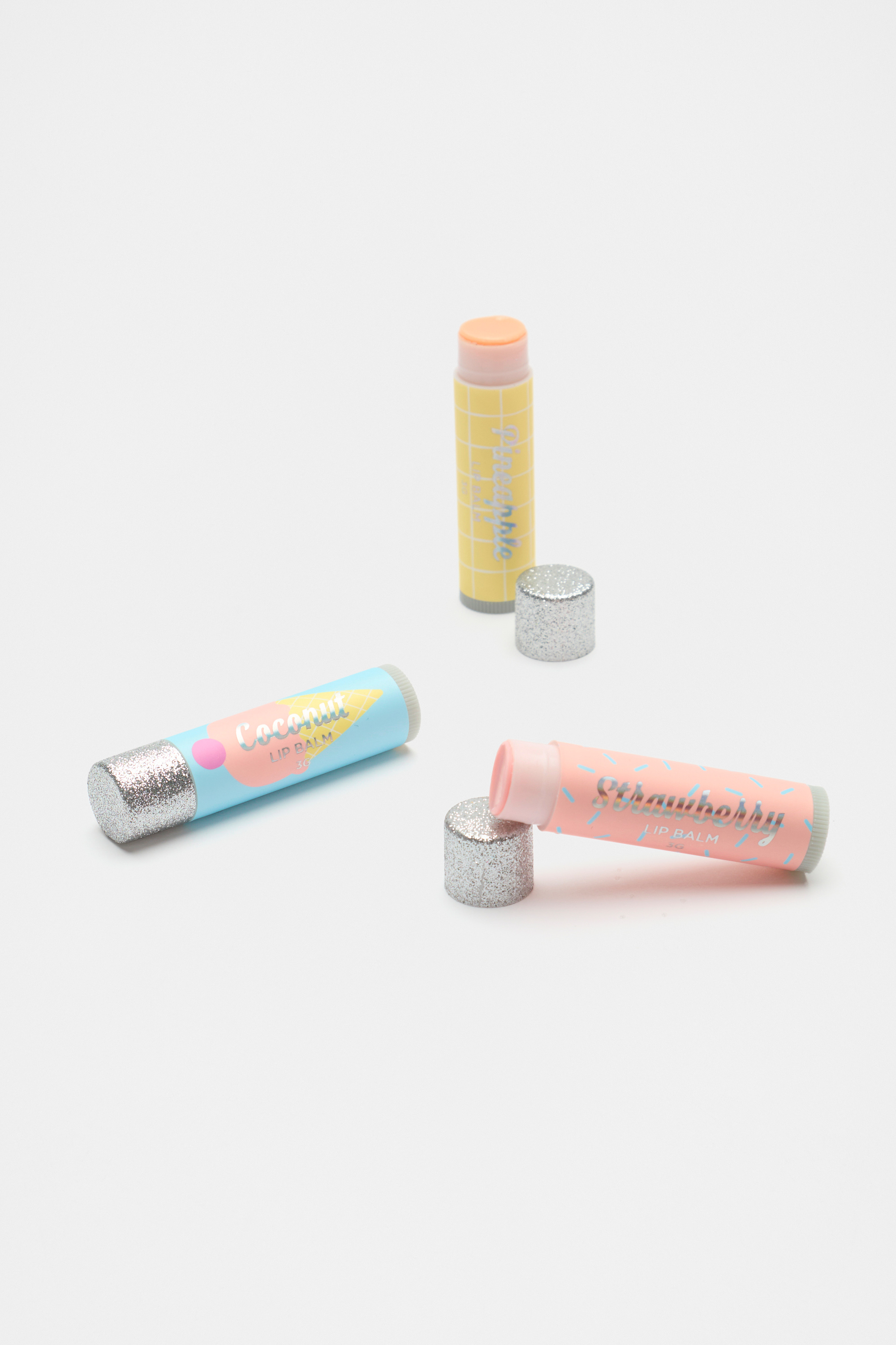 Perfect for gifting, this lip set features three scented lip balms and comes in the sweetest gelato packaging. This product is not a toy and is not suitable for children three years and under.