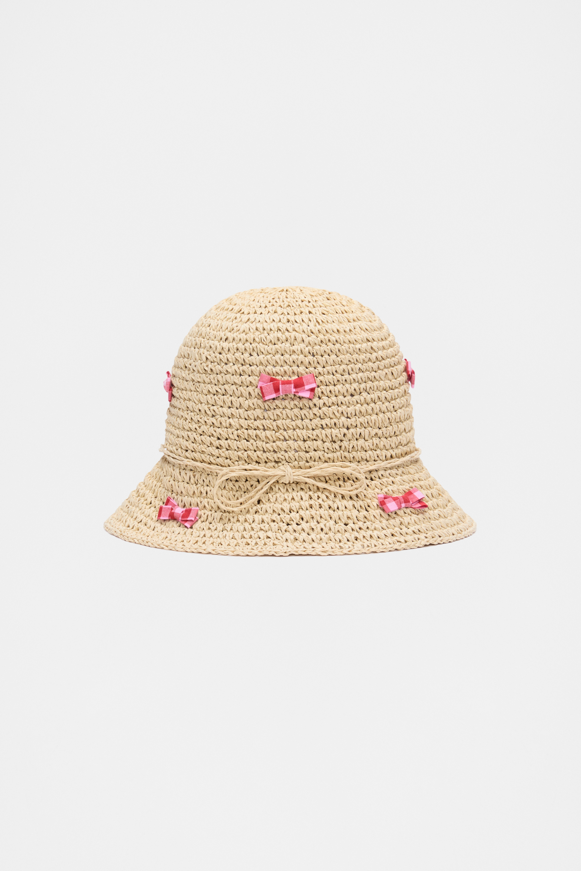 Complete her sunny day looks with this adorable straw hat. It features a design of gingham bows, perfect to pair with our gingham apparel styles.