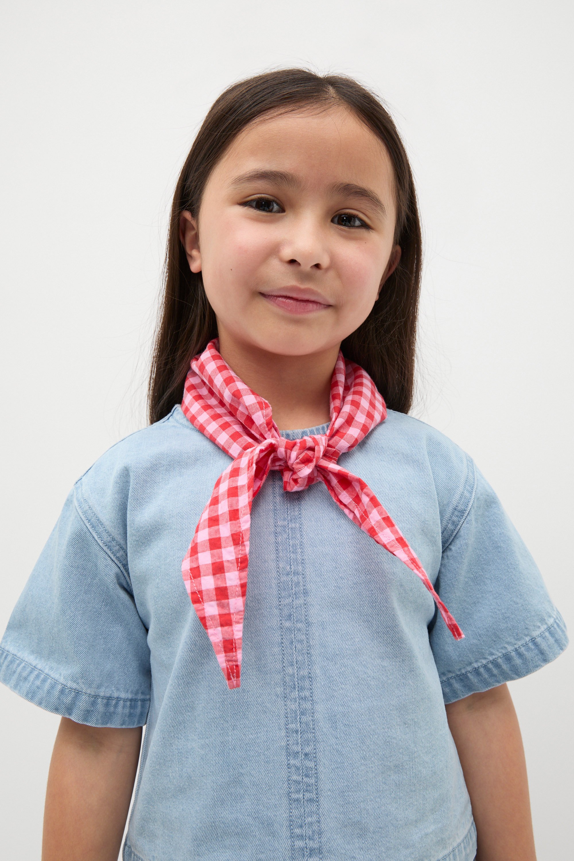 Designed to pair with our gingham styles, this neck scarf is sweetest little style to complete her look.