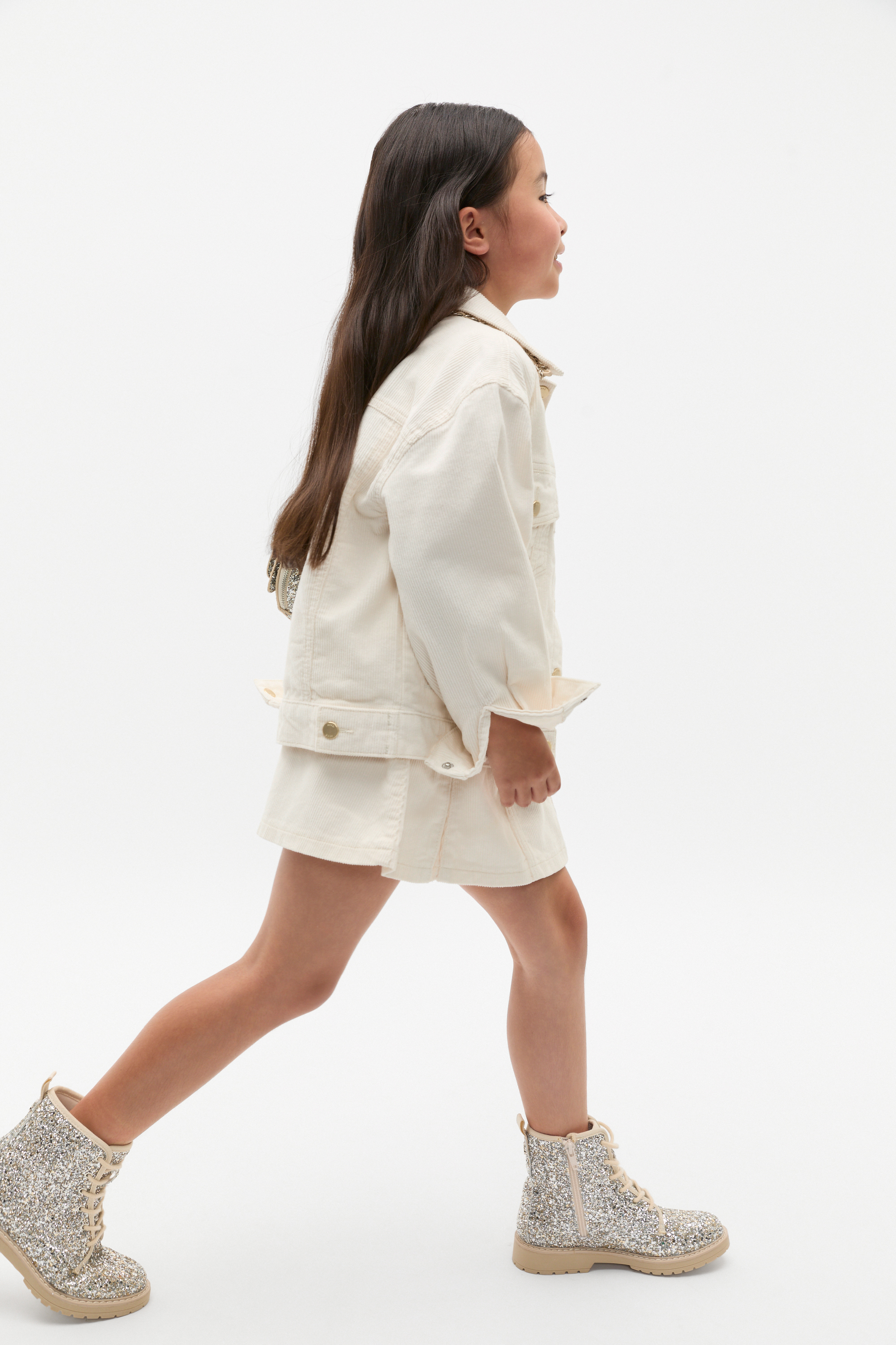 Ready for her next adventure, these sparkly boots are sure to turn heads. Ankle-high, they feature a glittery finish, laces, side zip for ease, a pull tab and a rubber sole.