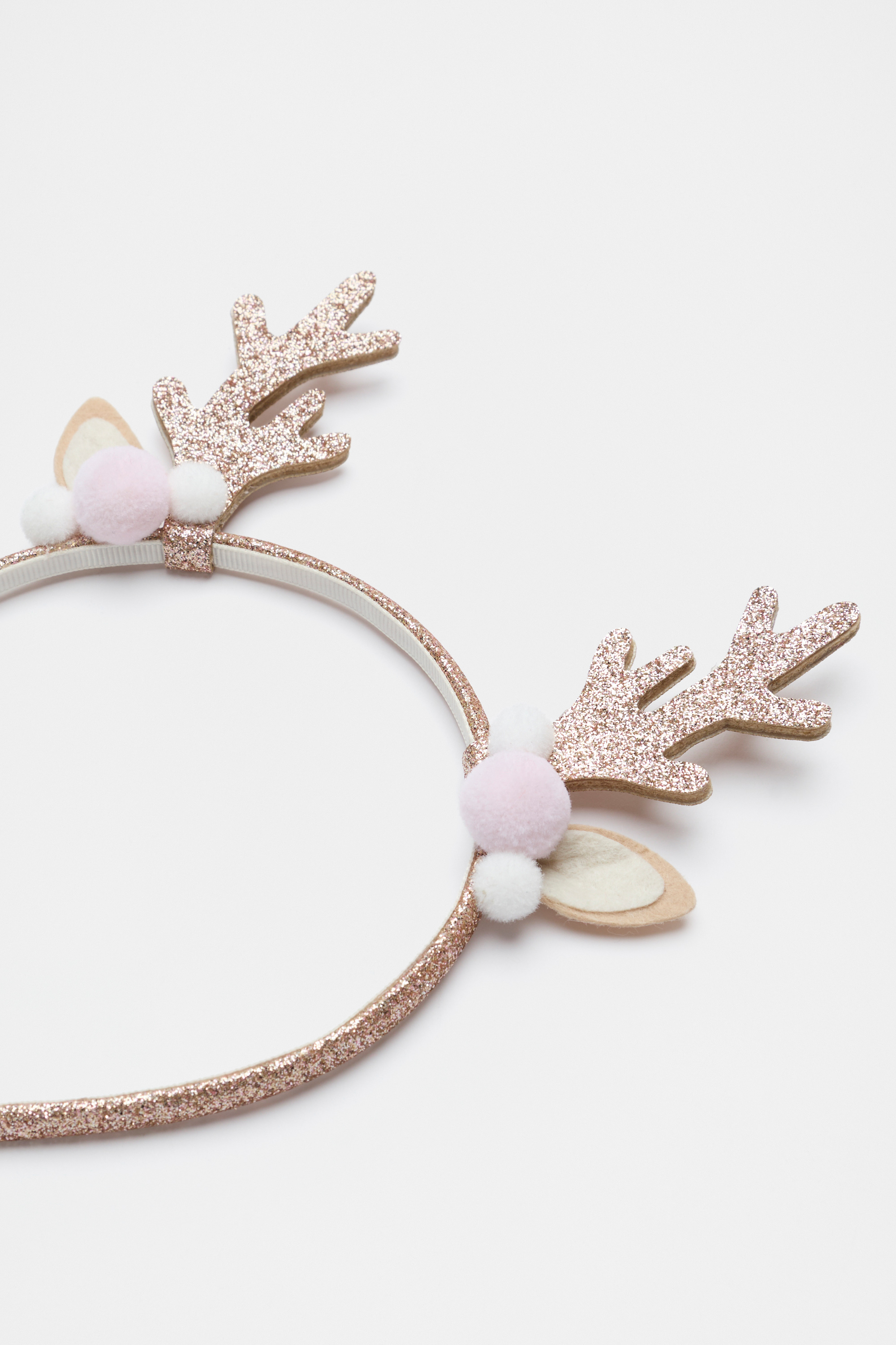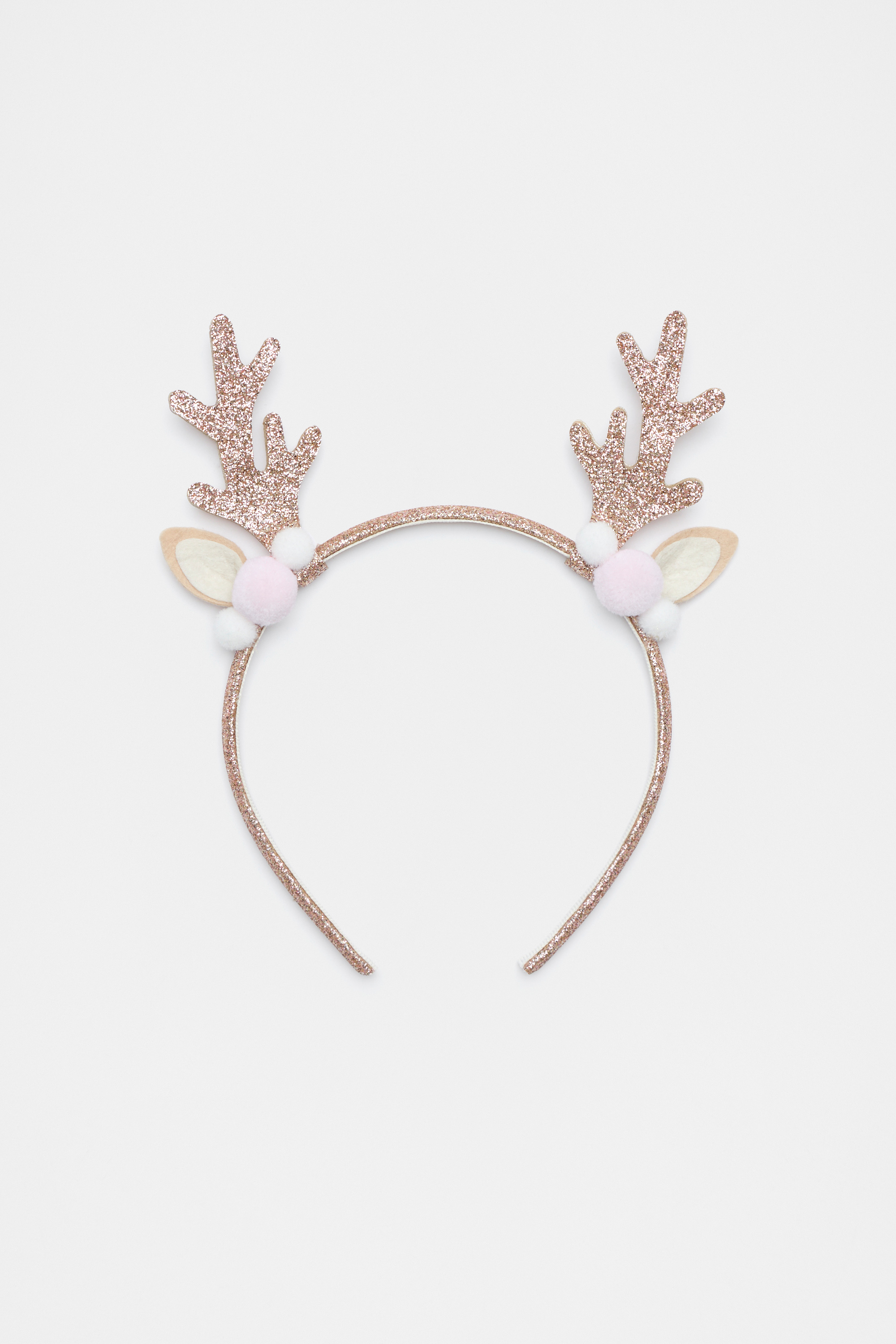 Add some festive cheer to her look with this reindeer ears headband. This product is not a toy and is not suitable for children three years and under.