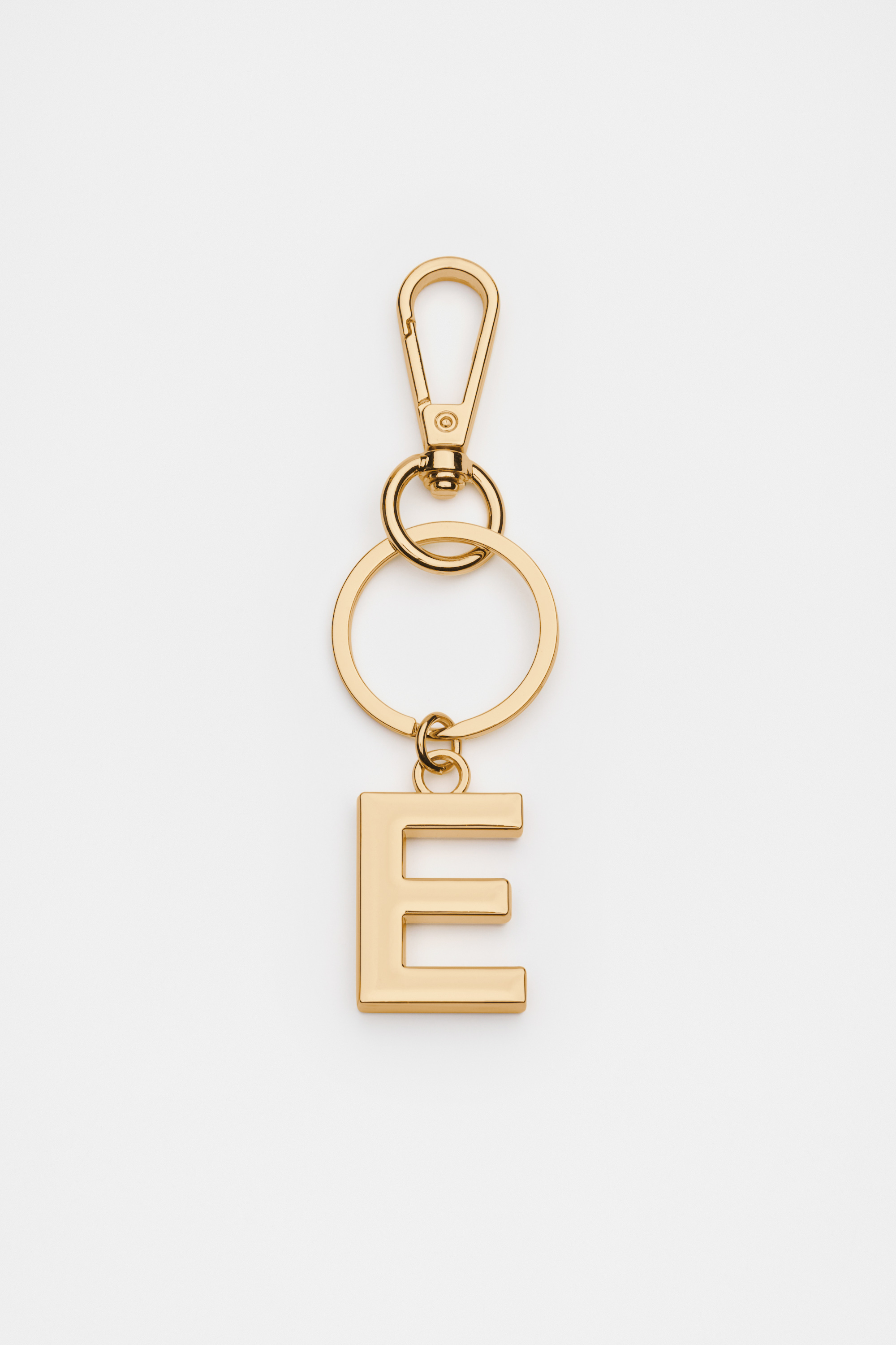 Gold Initials Keyring  E  hi-res Gold Initials Keyring  E  hi-res
