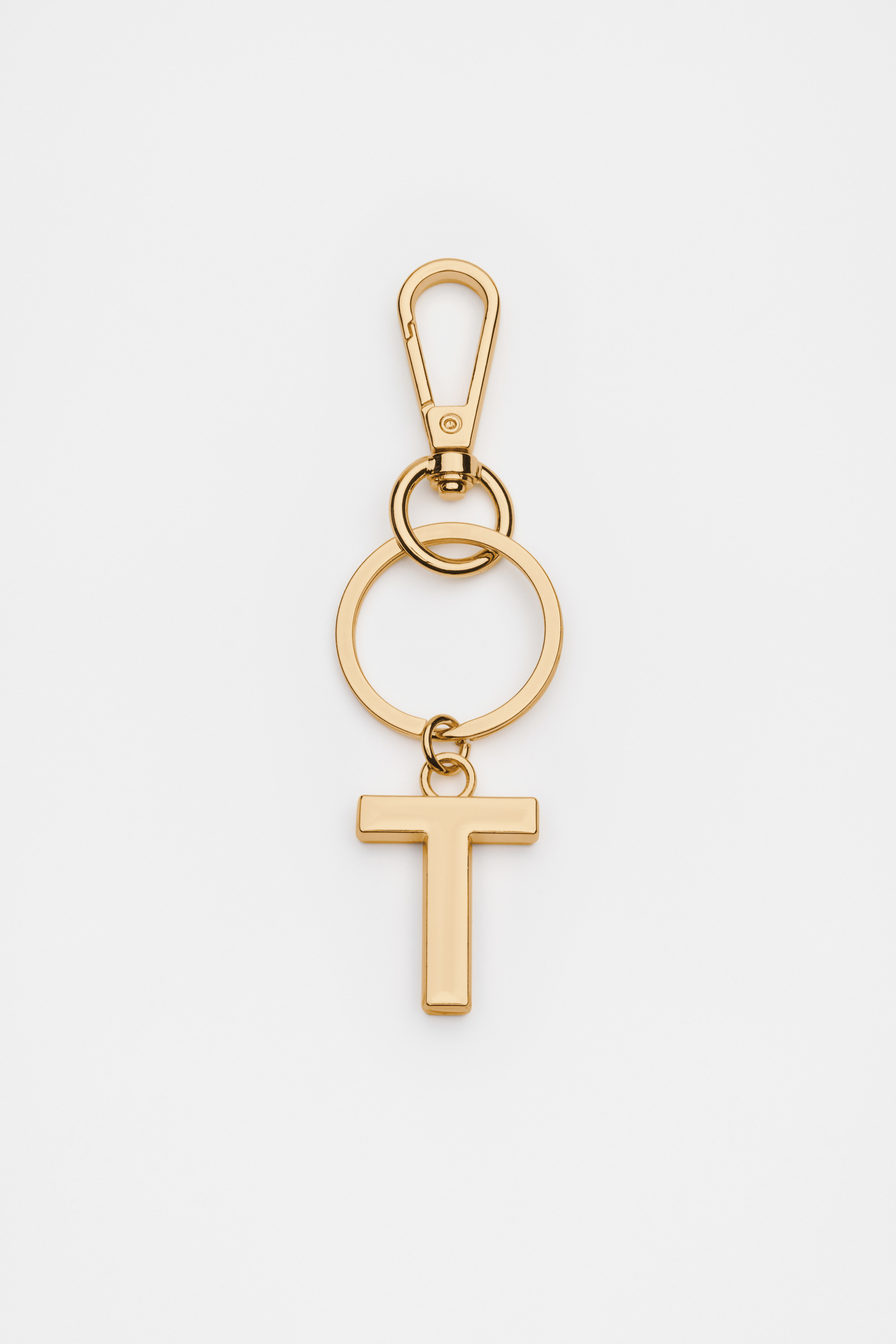 Gold Initials Keyring  T  hi-res Gold Initials Keyring  T  hi-res