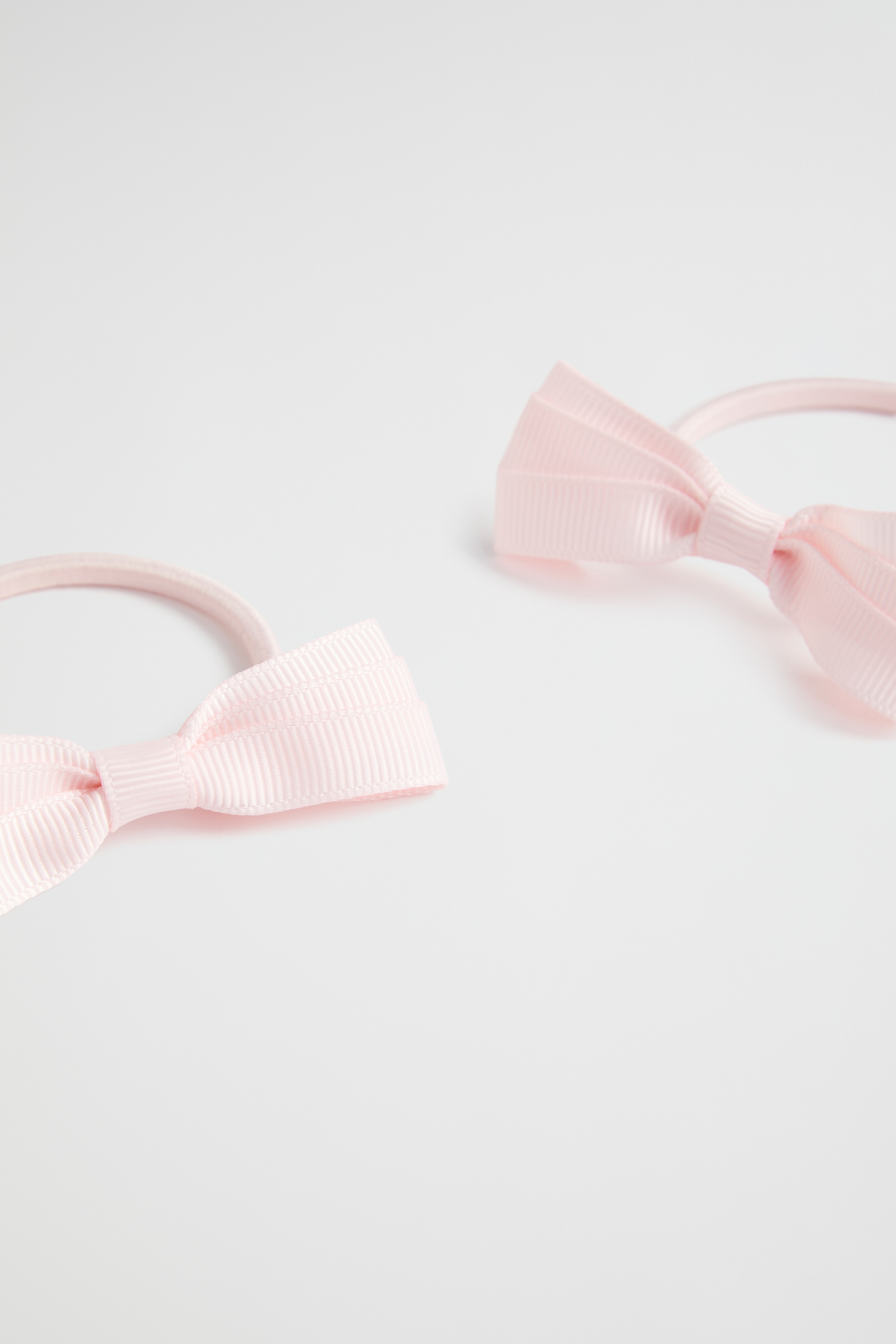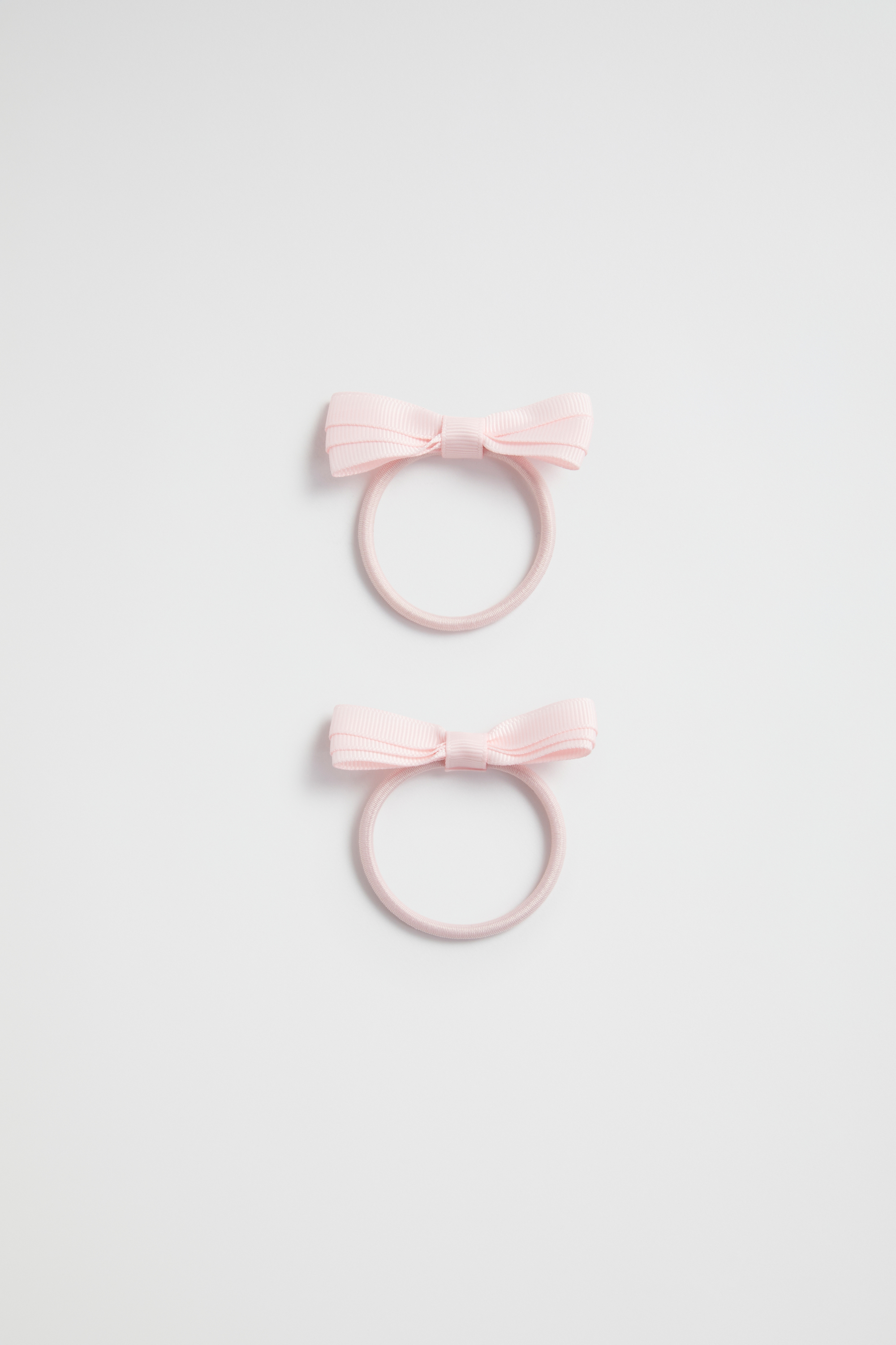 Add some colour to any outfit with these hair elastics, featuring grosgrain bows in matching colours. These elastics come in a handy set of two. This product is not a toy and is not suitable for children three years and under.