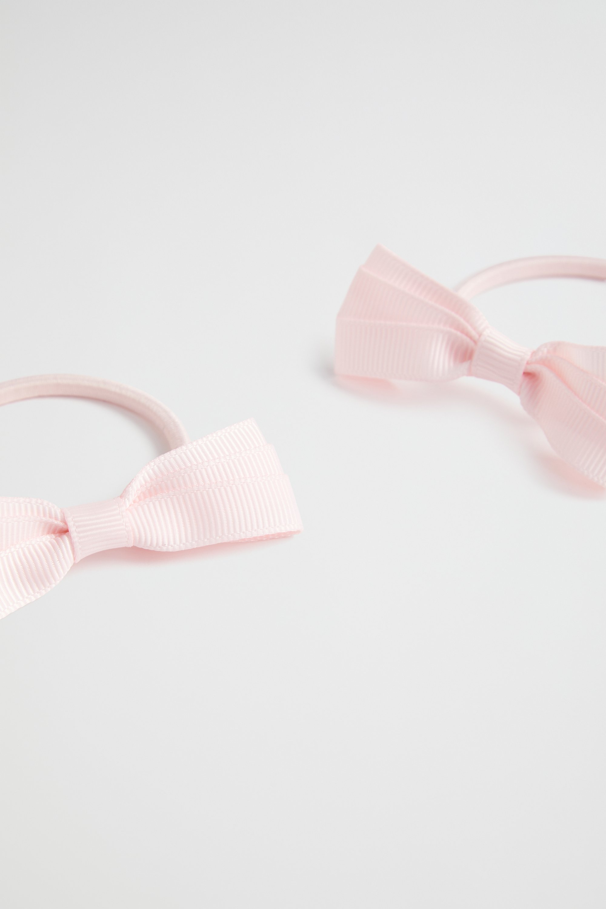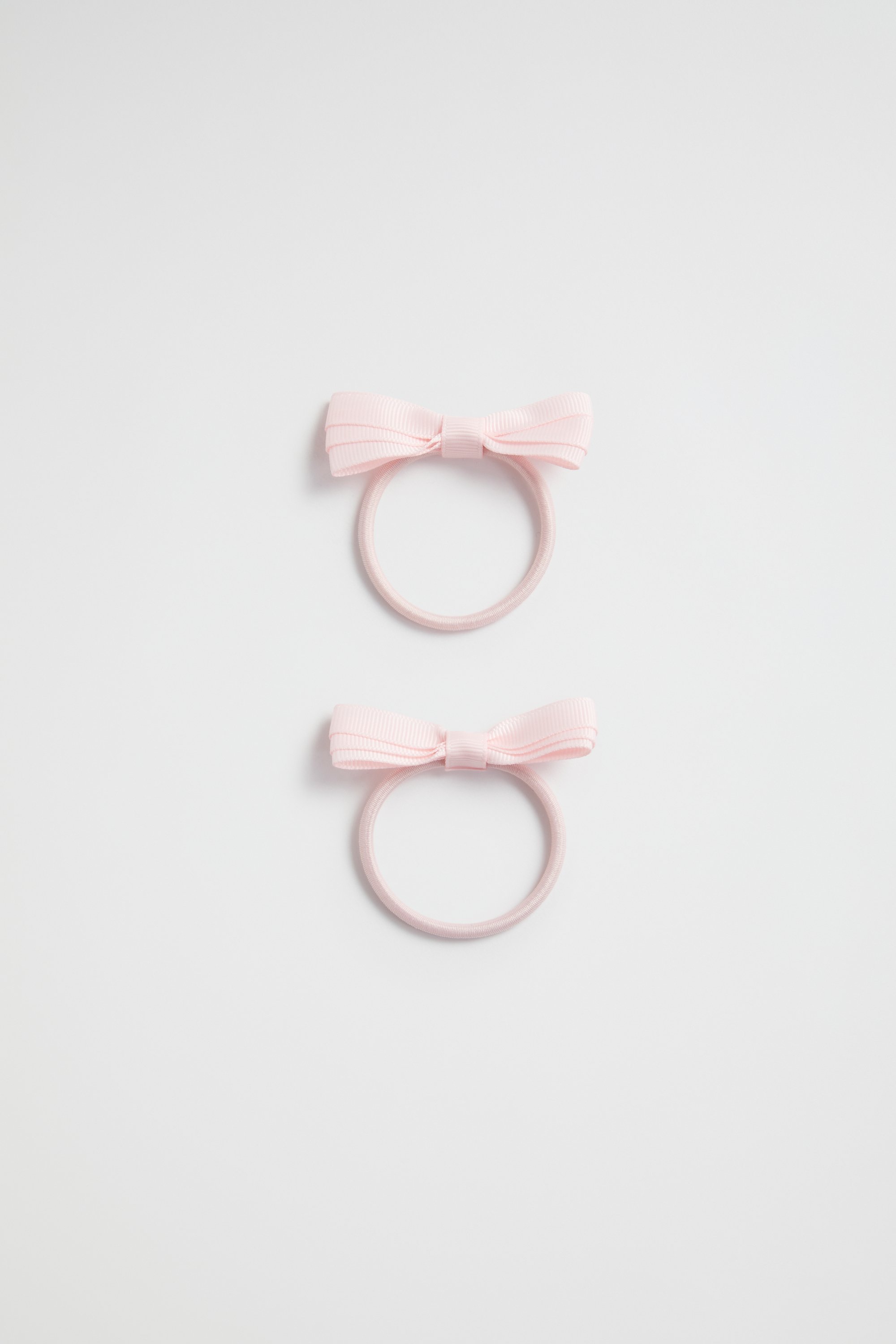 Add some colour to any outfit with these hair elastics, featuring grosgrain bows in matching colours. These elastics come in a handy set of two. This product is not a toy and is not suitable for children three years and under.