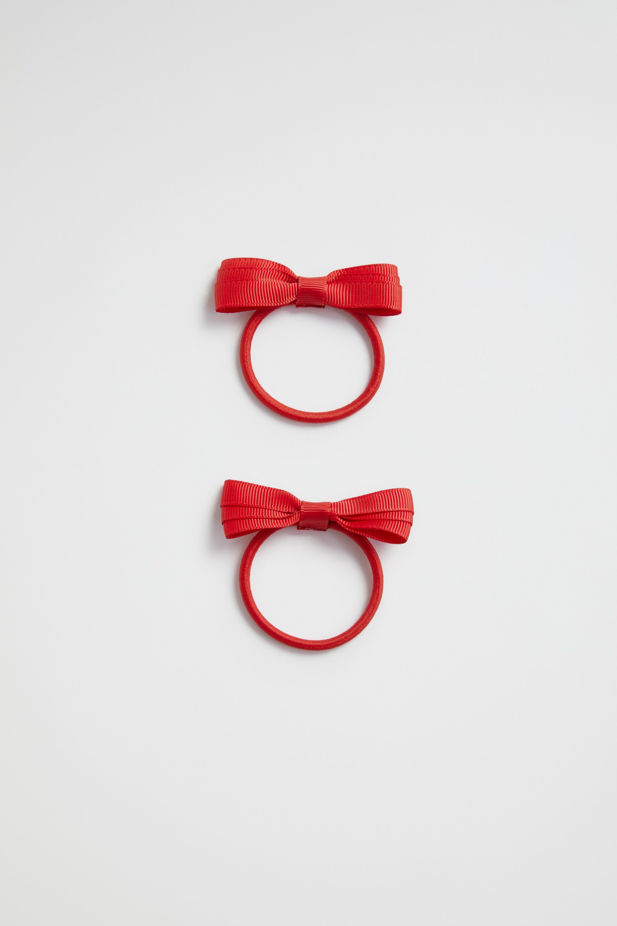 Add some colour to any outfit with these hair elastics, featuring grosgrain bows in matching colours. These elastics come in a handy set of two. This product is not a toy and is not suitable for children three years and under.