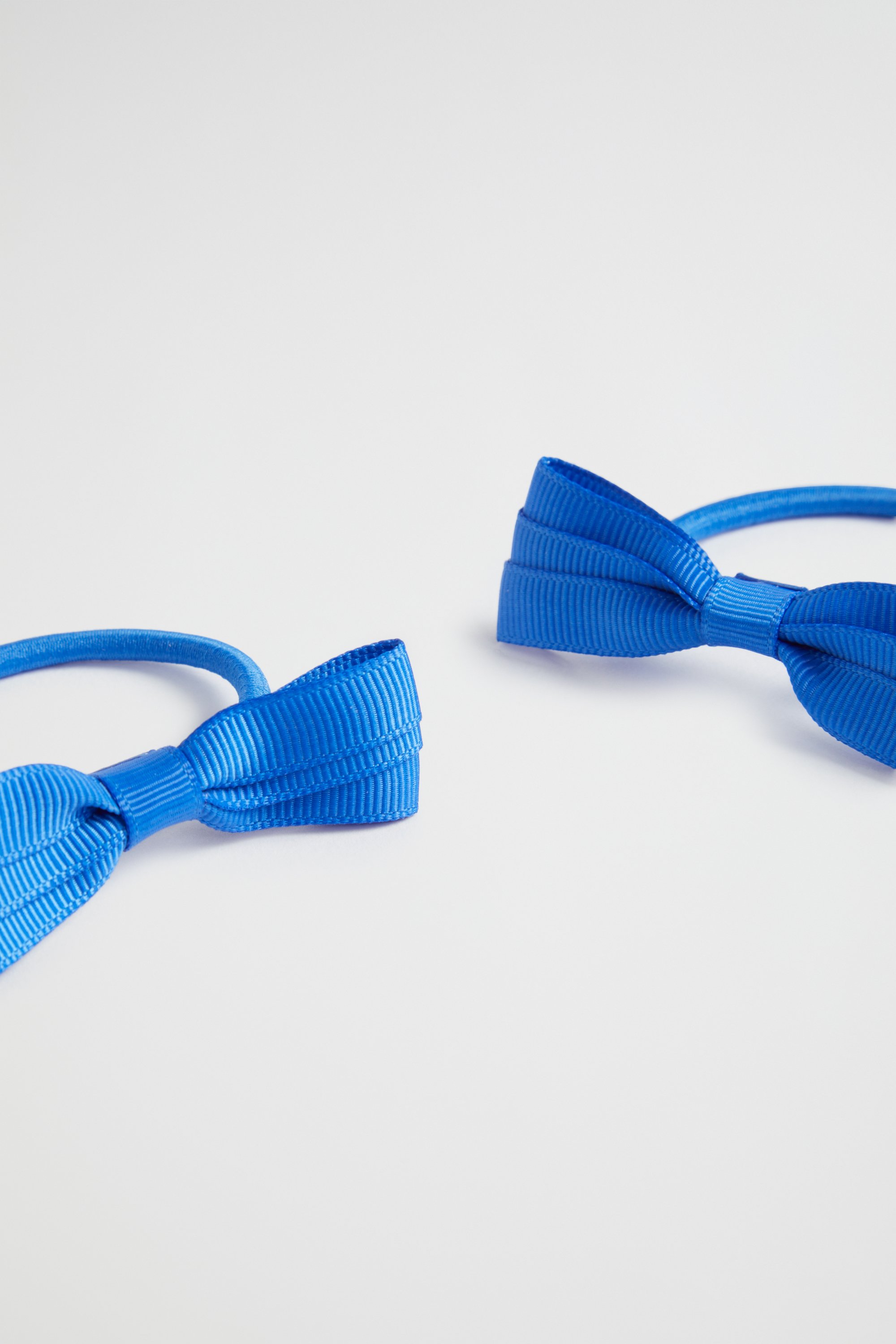 Add some colour to any outfit with these hair elastics, featuring grosgrain bows in matching colours. These elastics come in a handy set of two. This product is not a toy and is not suitable for children three years and under.