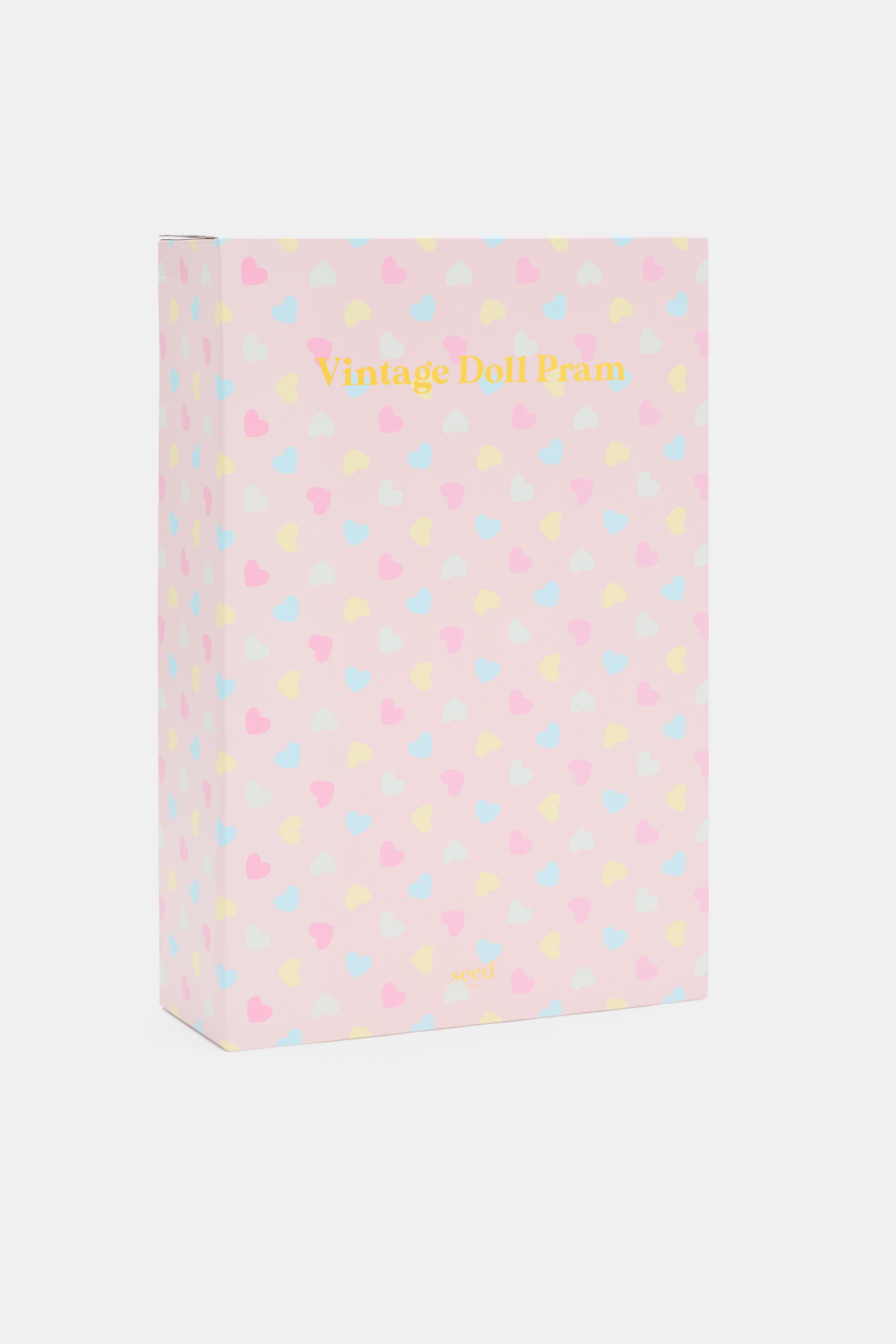 Bring her imaginative play to life with this charming vintage-inspired pram. With a colourful quilted heart design, it features a collapsible canopy, a storage basket and a small pocket decorated with a ruffle-trim heart. This product is a toy and should only be used with dolls and is not designed to be used for babies, children or pets. Due to small parts, not suitable for children three years and under, potential choking hazard.