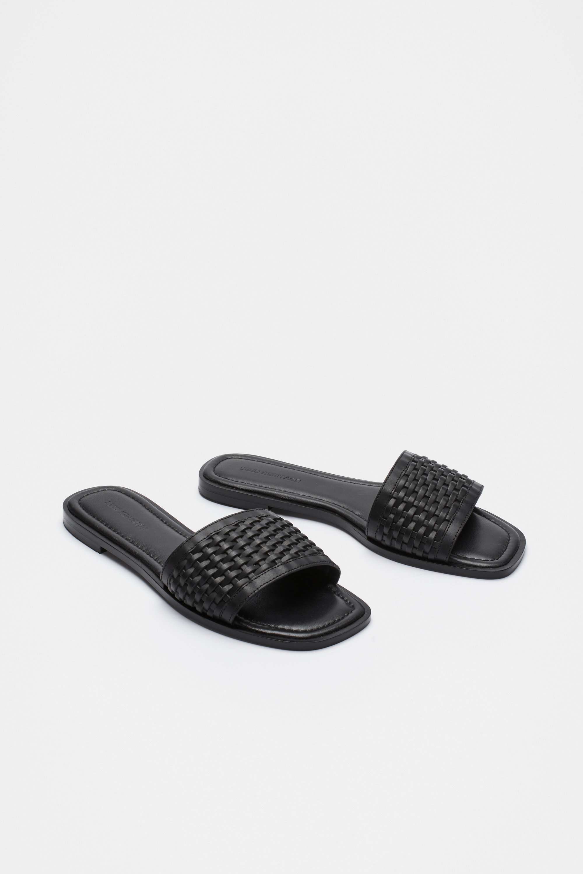 Finish off any warm-weather outfit with these slides, crafted from premium leather. They feature a square toe, a woven upper, and a flat profile.