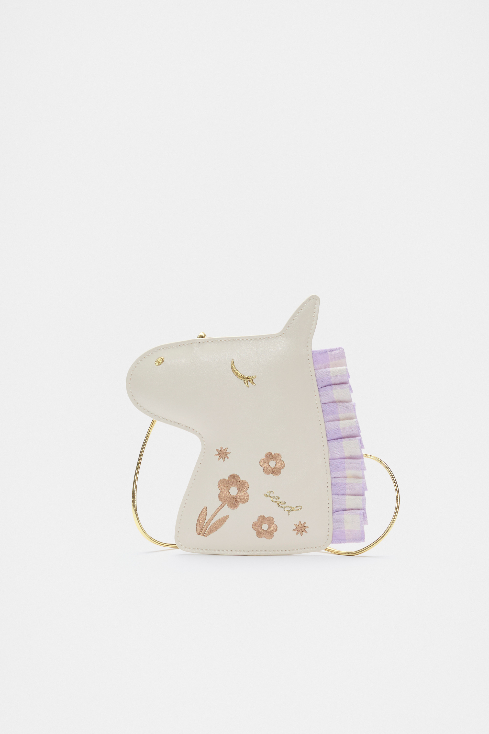 This adorable novelty bag is one she'll treasure. It features a horse design with embroidered flowers and a zip pocket at the back. Pair with the coordinating accessories and apparel to complete her look.