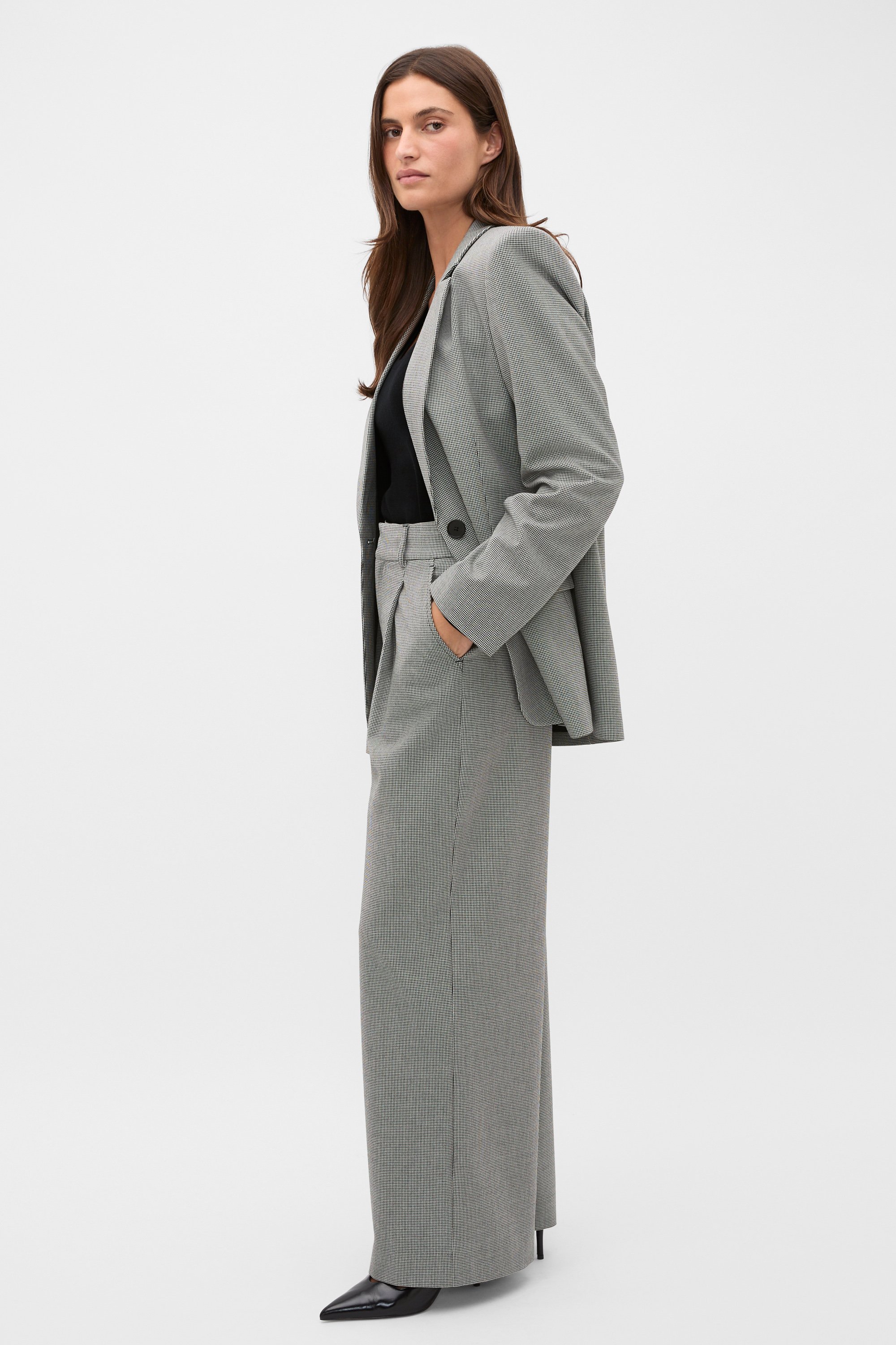 A tailored design with timeless appeal, this houndstooth jacket elevates your nine-to-five styling. It features a notched lapel, long sleeves and secures with a single button. Pair with the coordinating tailored pants for a modern suiting moment with impact.