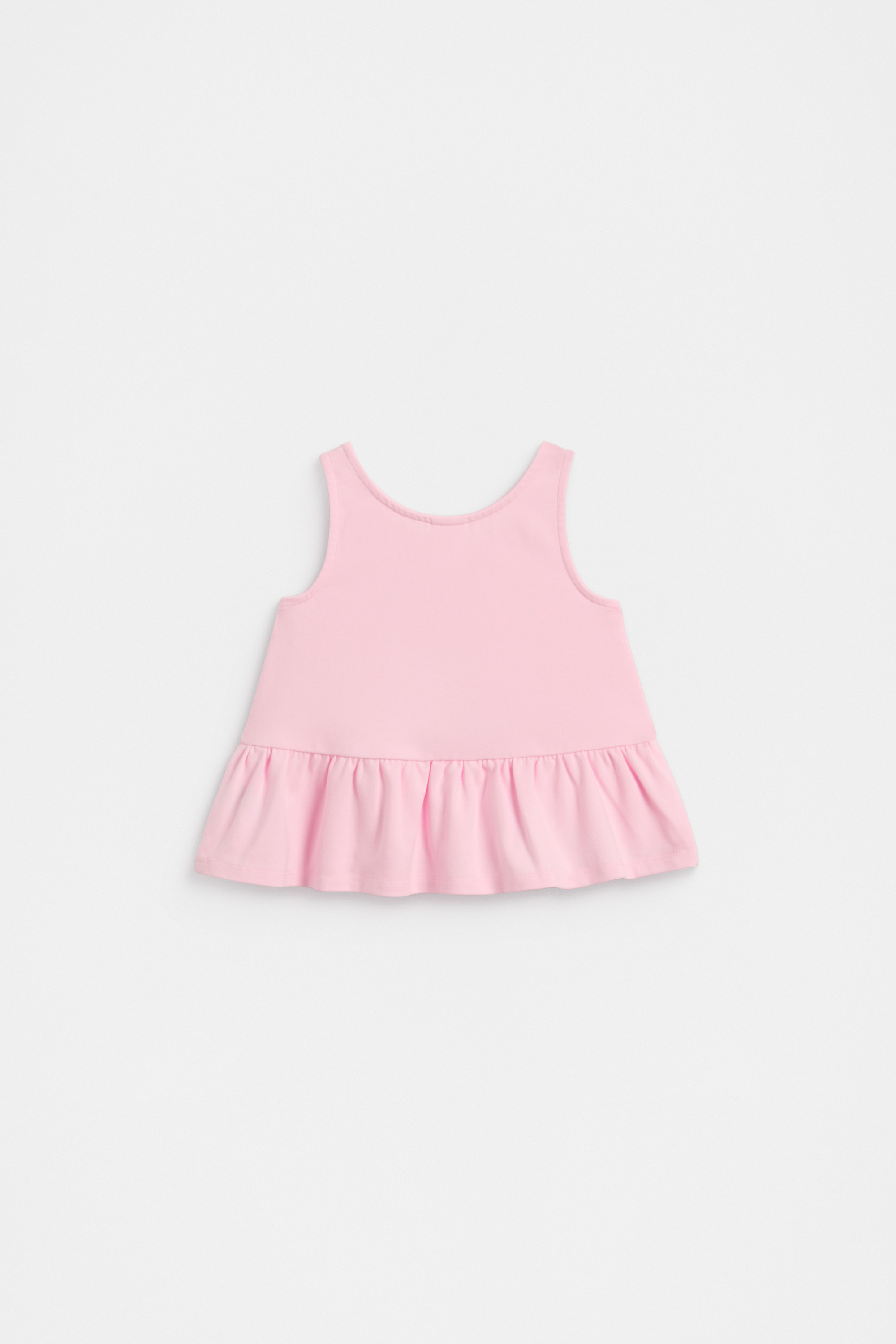This playful tank top is set to become a new favourite in her little wardrobe. Crafted in premium cotton, it features a round neck, an adorable ice cream design with a distressed effect, and a ruffle trim for added sweetness.