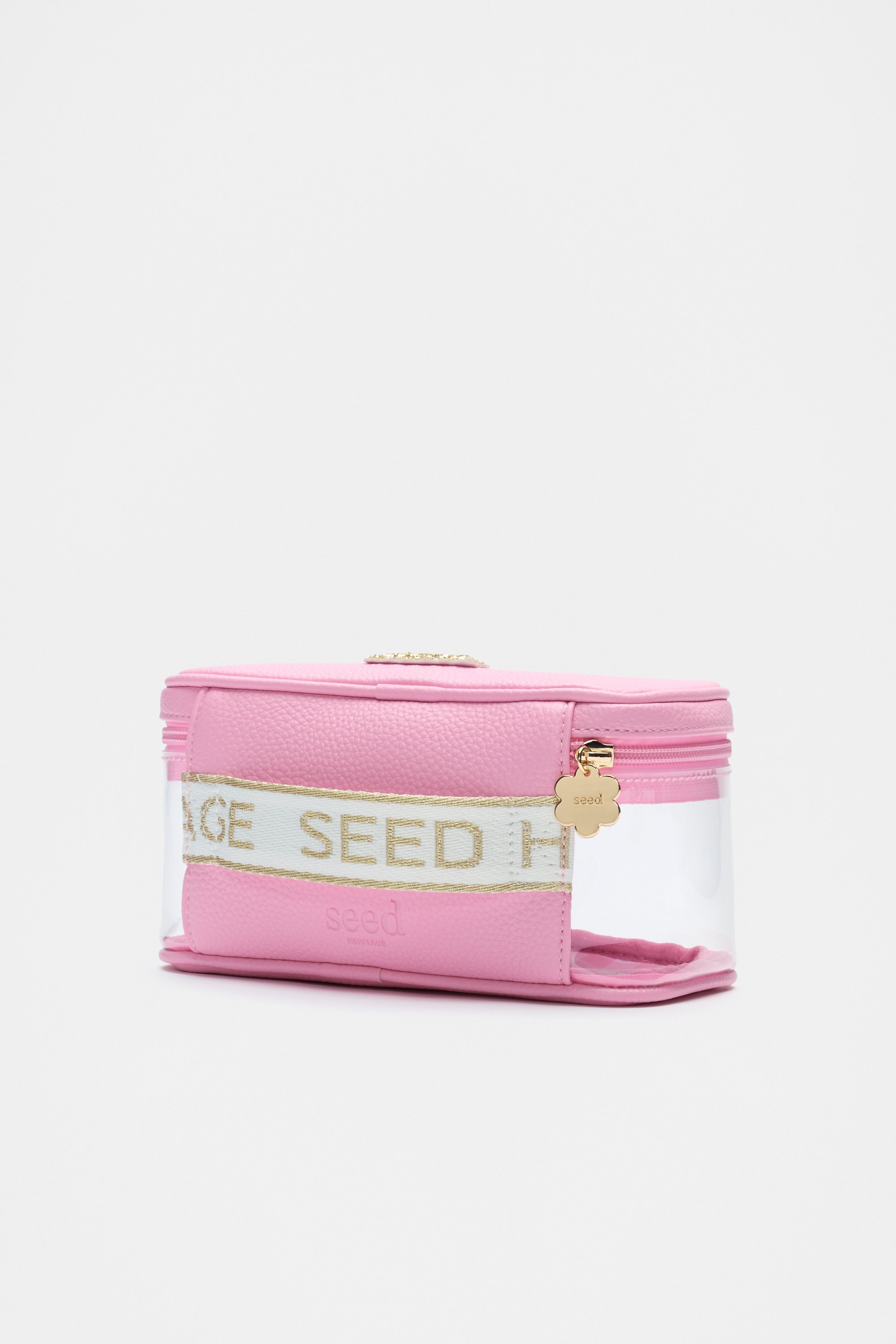 Ideal to keep her things together, this cosmetics bag is detailed with a glitter initial making it the perfect personalised gift. It features a clear design with a zipped lid closure, soft gold hardware and an internal gingham design. It also has a branded carry handle