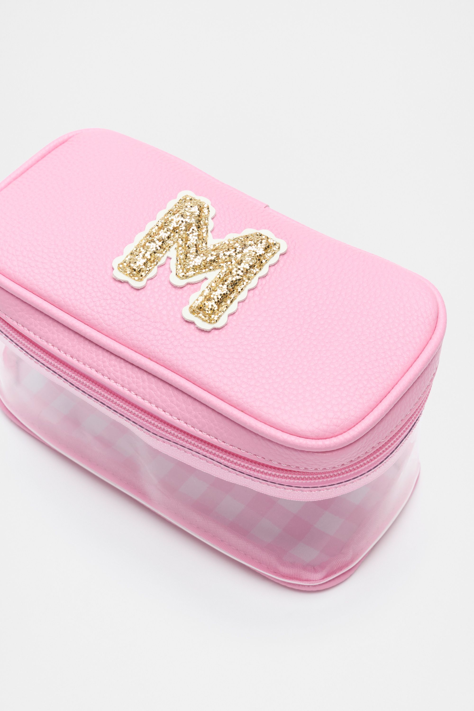 Ideal to keep her things together, this cosmetics bag is detailed with a glitter initial making it the perfect personalised gift. It features a clear design with a zipped lid closure, soft gold hardware and an internal gingham design. It also has a branded carry handle