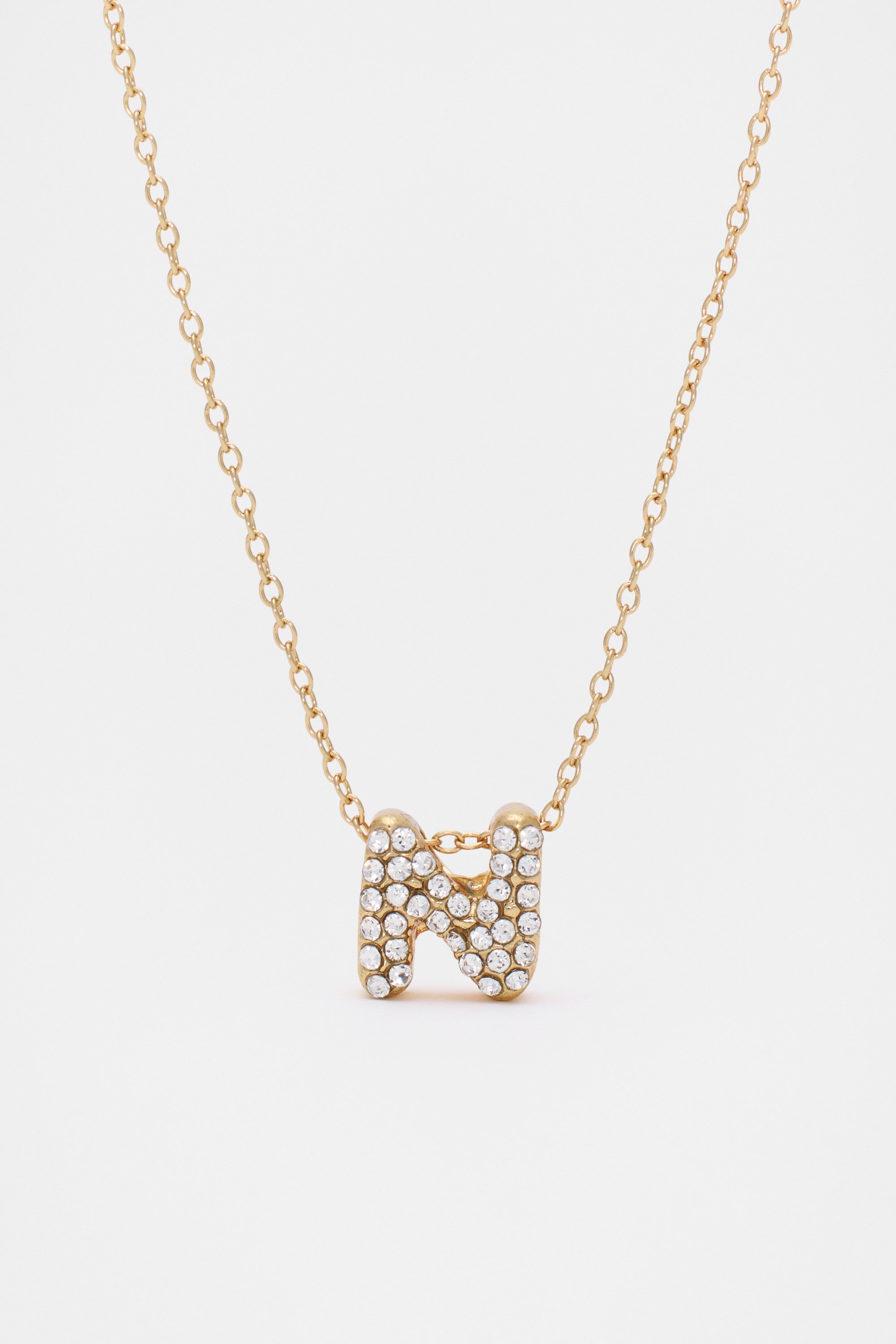 Sweet and sparkly, this necklace adds a special personal touch, perfect for gifting. It features a jewelled initial on a gold-tone chain. This product is not a toy and is not suitable for children three years and under.