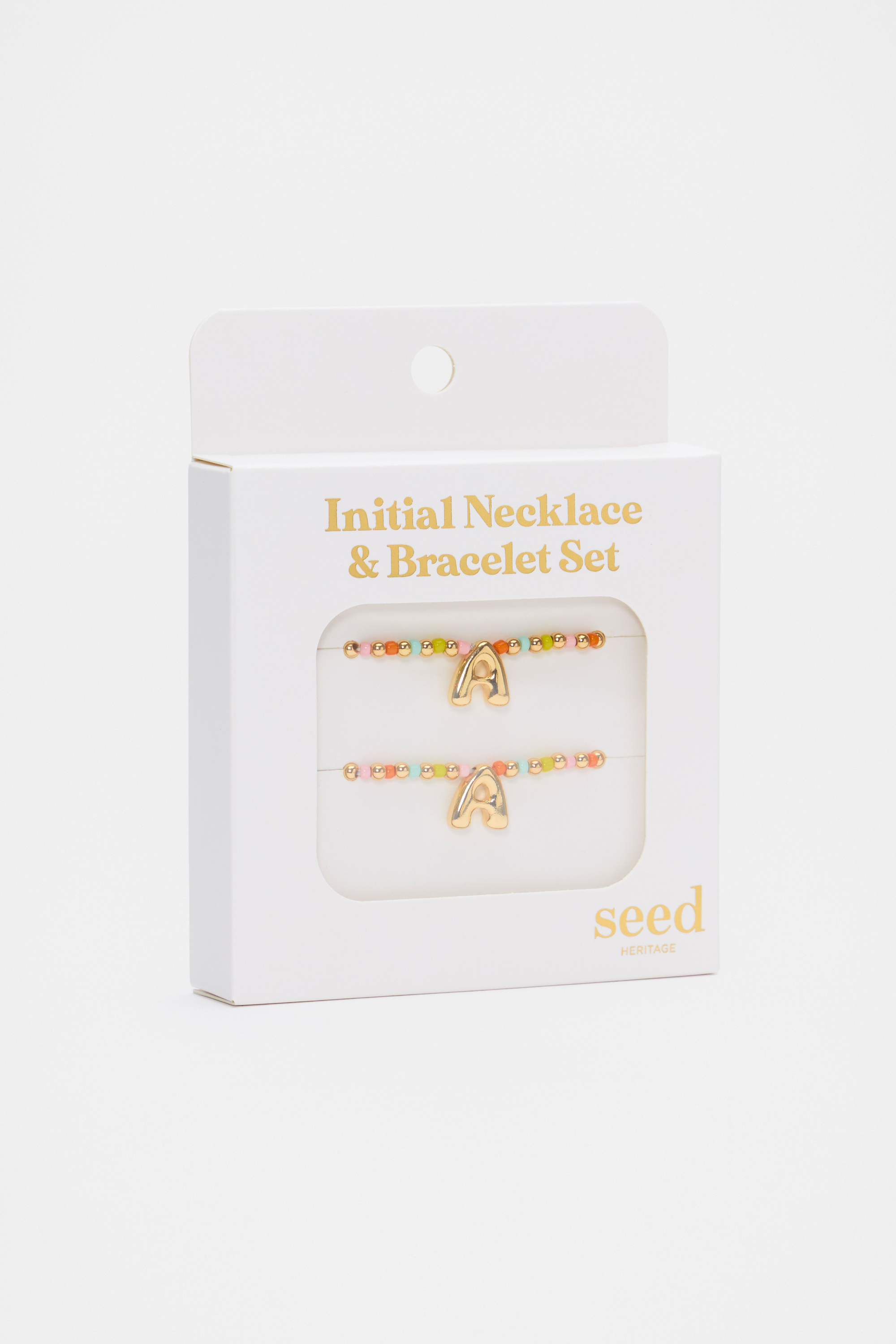 Initial Necklace And Bracelet Set  A  hi-res Initial Necklace And Bracelet Set  A  hi-res