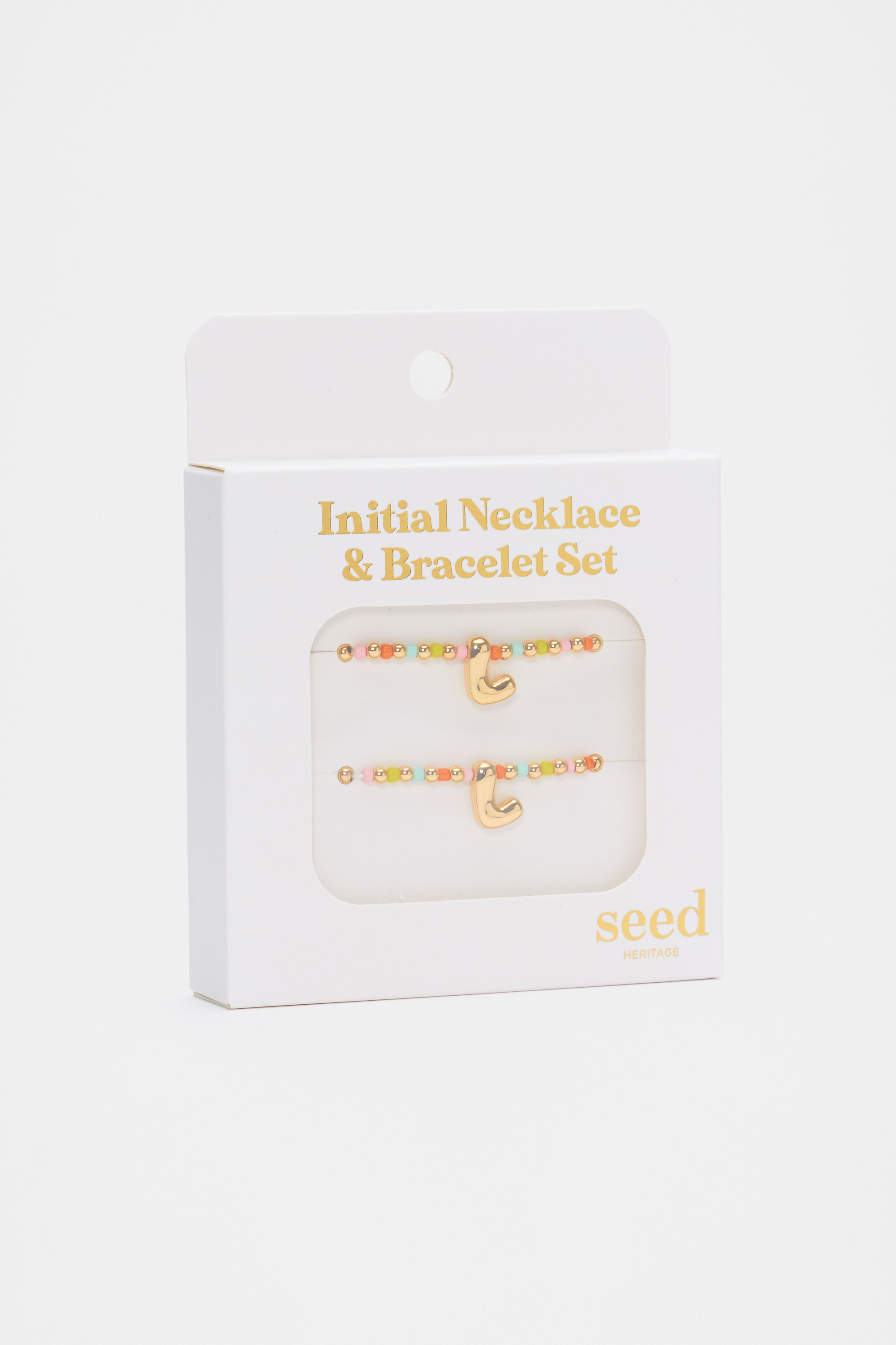 Initial Necklace And Bracelet Set  L  hi-res Initial Necklace And Bracelet Set  L  hi-res