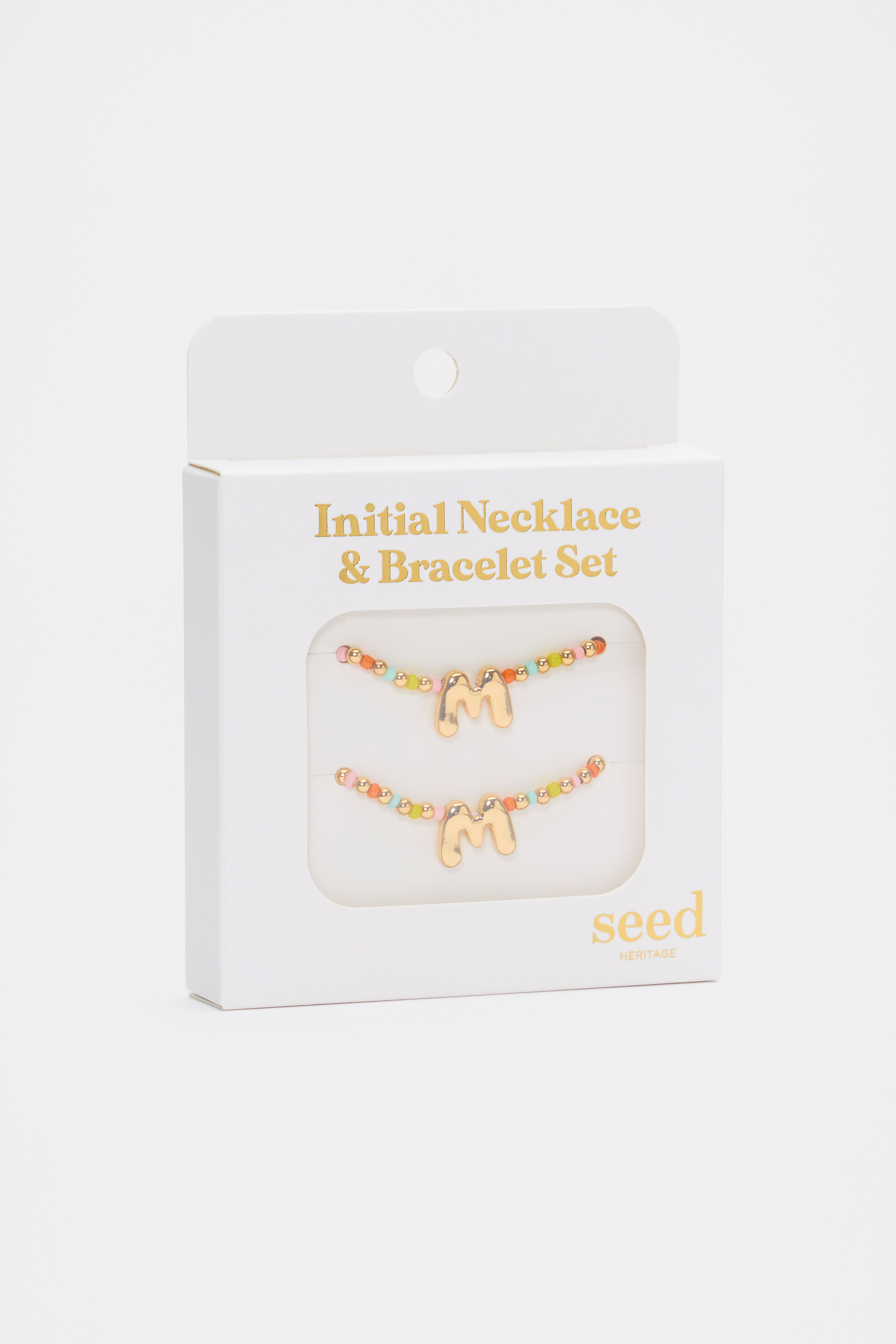 Personalised and sweet, this jewellery set is one she'll adore. It features a matching necklace and bracelet with a beaded design and initial detail. On a stretchy elastic, it's easy to take on and off. This product is not a toy and is not suitable for children three years and under.