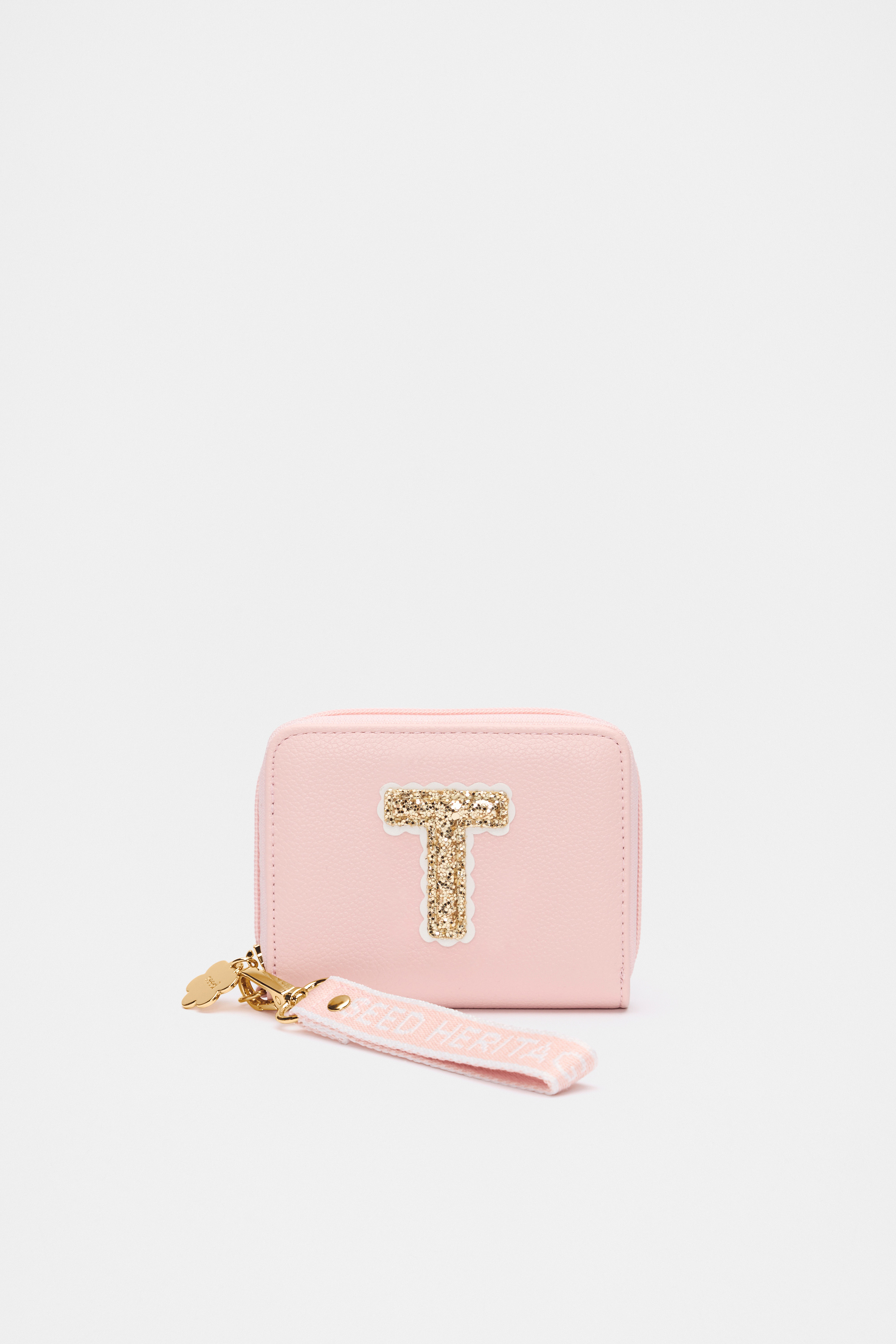 Sparkly and cute, this initial wallet adds a personalised touch and makes the perfect gift. It features a top zip closure, a flower charm zip and a branded wrist strap.
