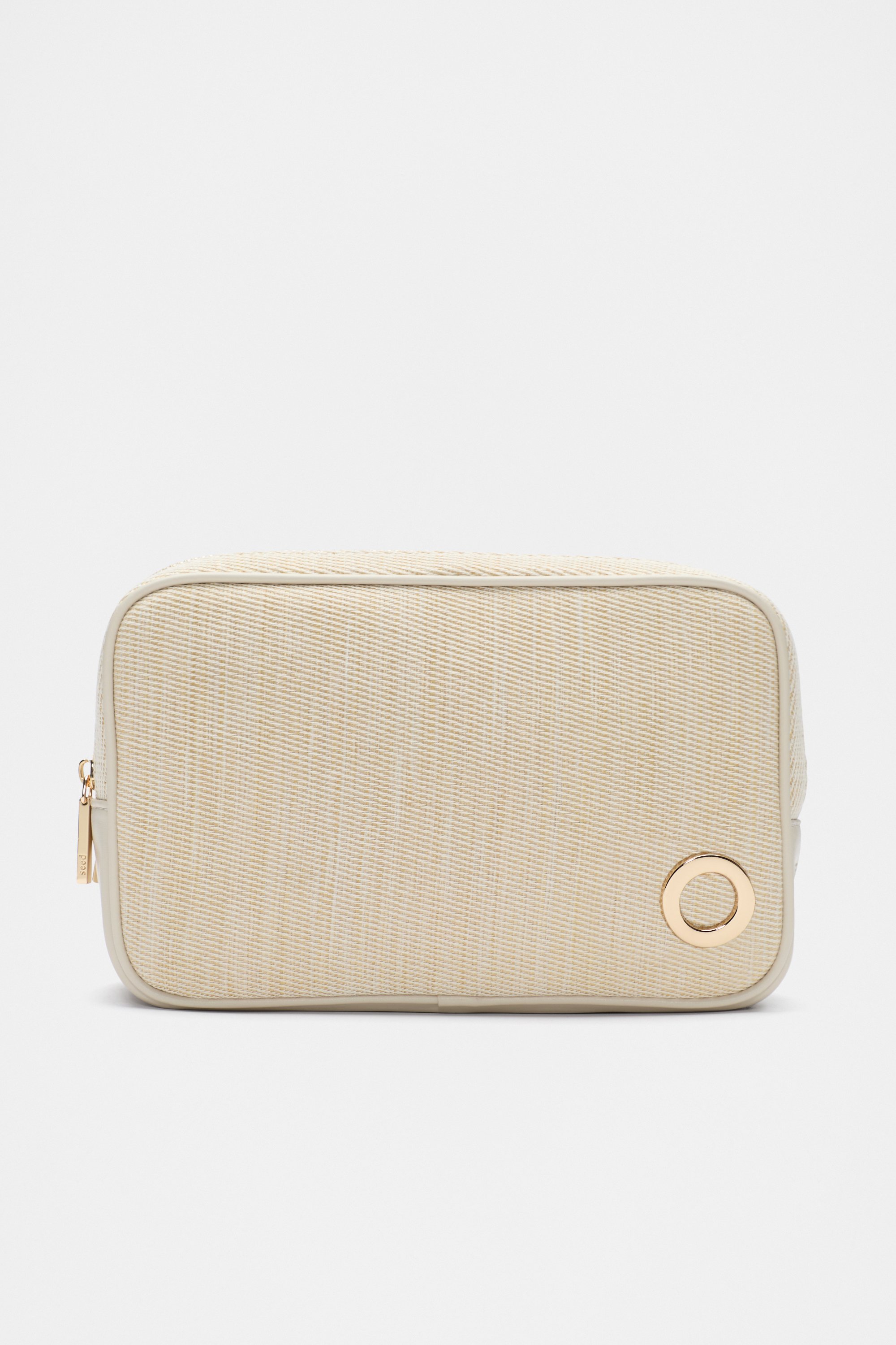 Convenient and the ideal size for the essentials, this make up bag has a structured shape, a zip closure, and a metallic initial detail for a touch of personality. It also has a unique textured finish.