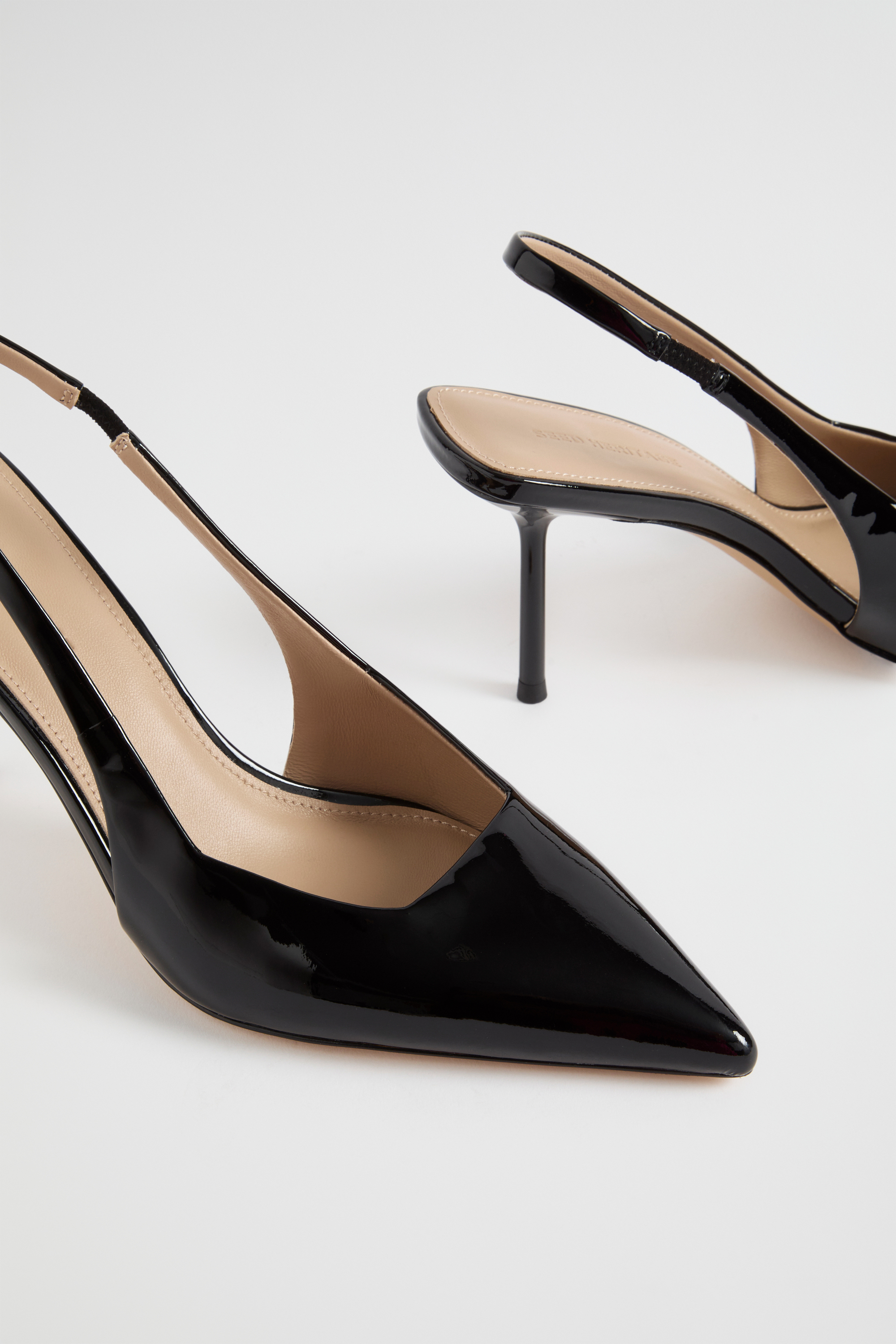 These heels are a classic style to add to your collection. They feature an elasticated slingback strap, a pointed toe and a slim high heel, with a leather upper and lining.