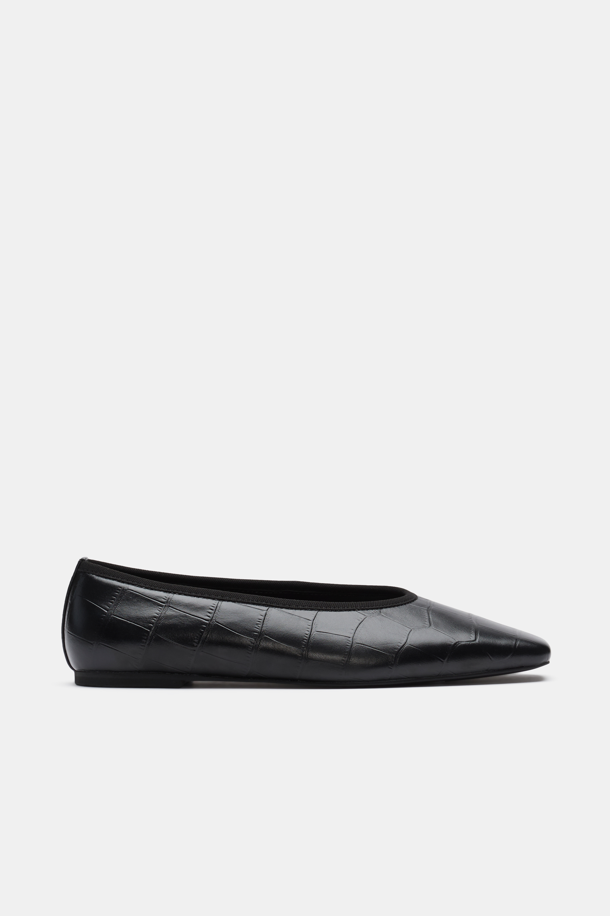 Elevate your everyday style with this modern pair of ballet flats. Perfect for your workwear wardrobe, they feature a square toe design with a mock-croc debossed detail.