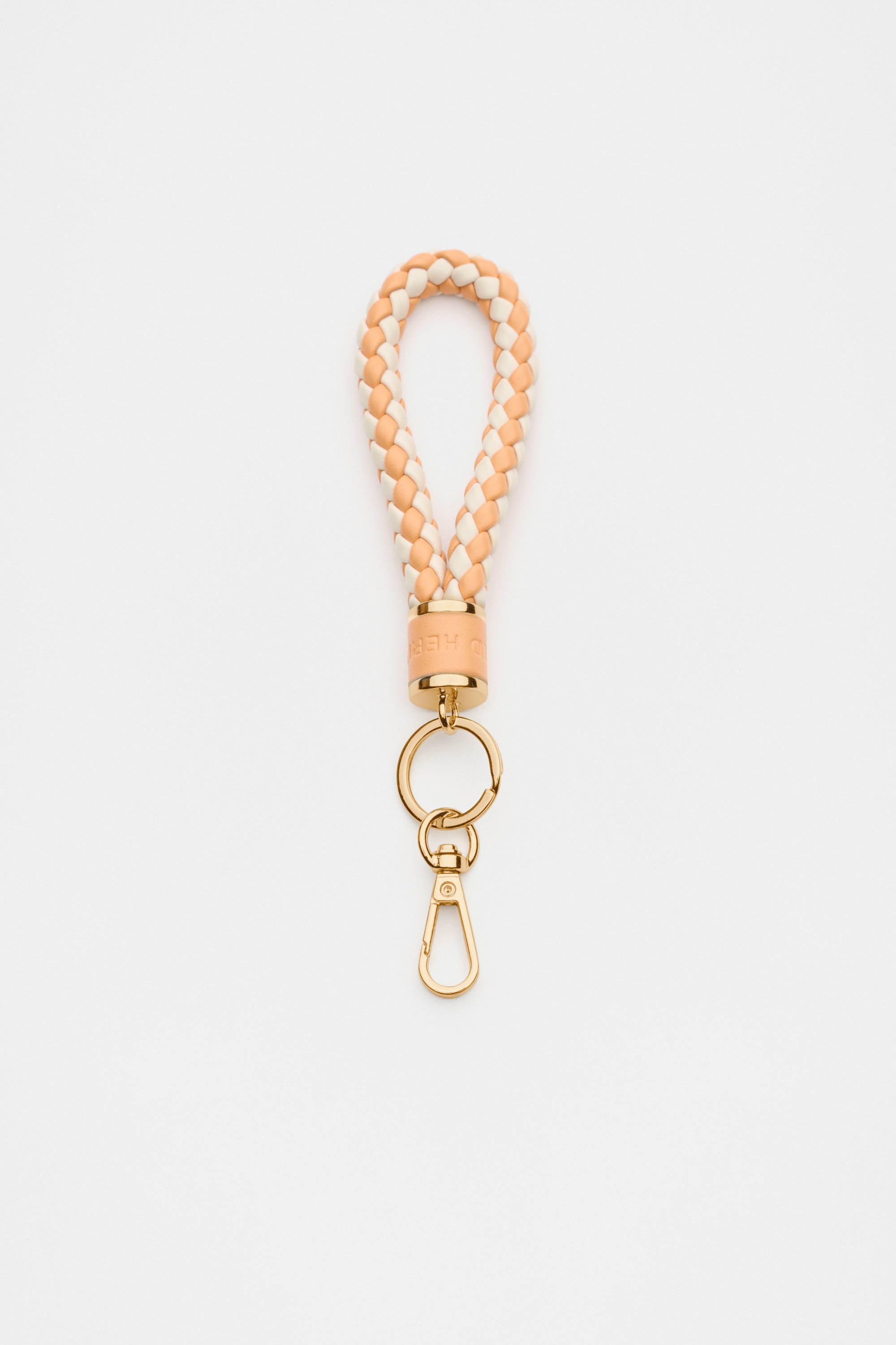 A handbag necessity, this keyring offers a stylish and practical solution. It features gold look hardware, Seed logo design and a braided strap.