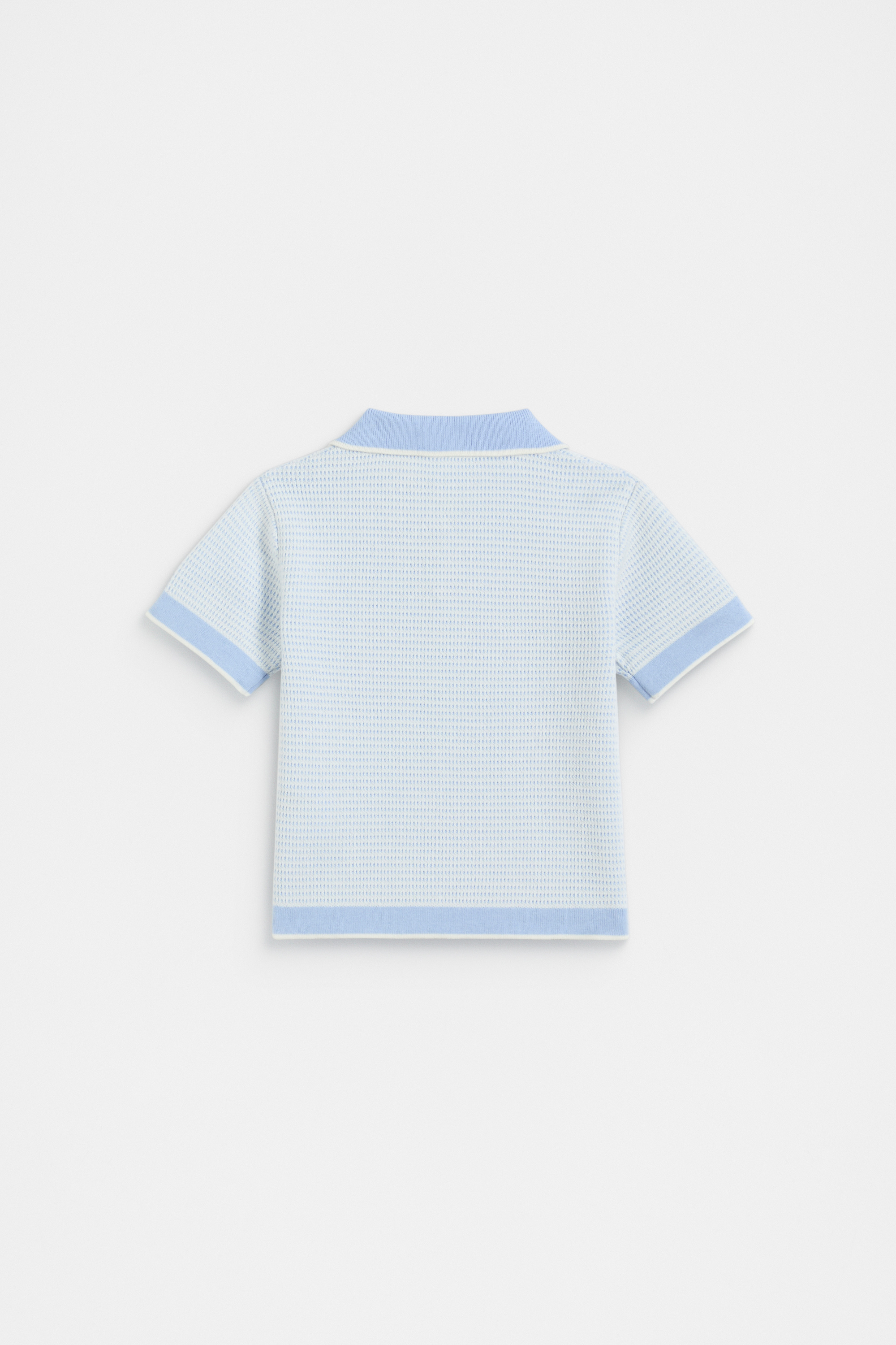 Smarten his look with this classic polo, finished in a soft and textured knit. Crafted in premium cotton, it features a polo collar, short sleeves and contrast trims. This polo is a mini-me style designed to match our menswear range.