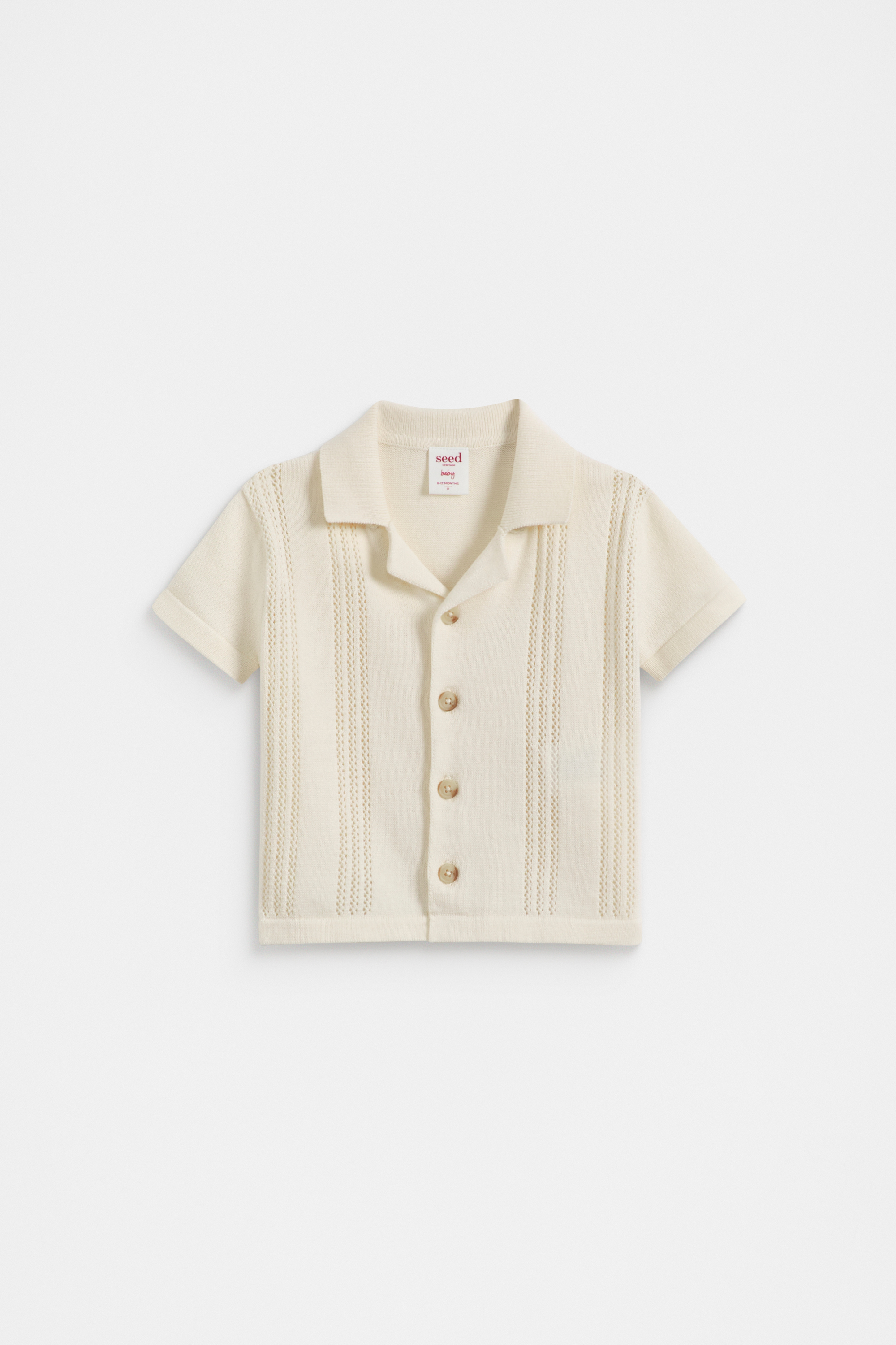 Crafted from a comfortable cotton knit, this shirt is the perfect addition to any tiny wardrobe. It features a notched collar, short sleeves, a button front, and ribbed trims. Pair it with the matching knit shorts for the sweetest set.