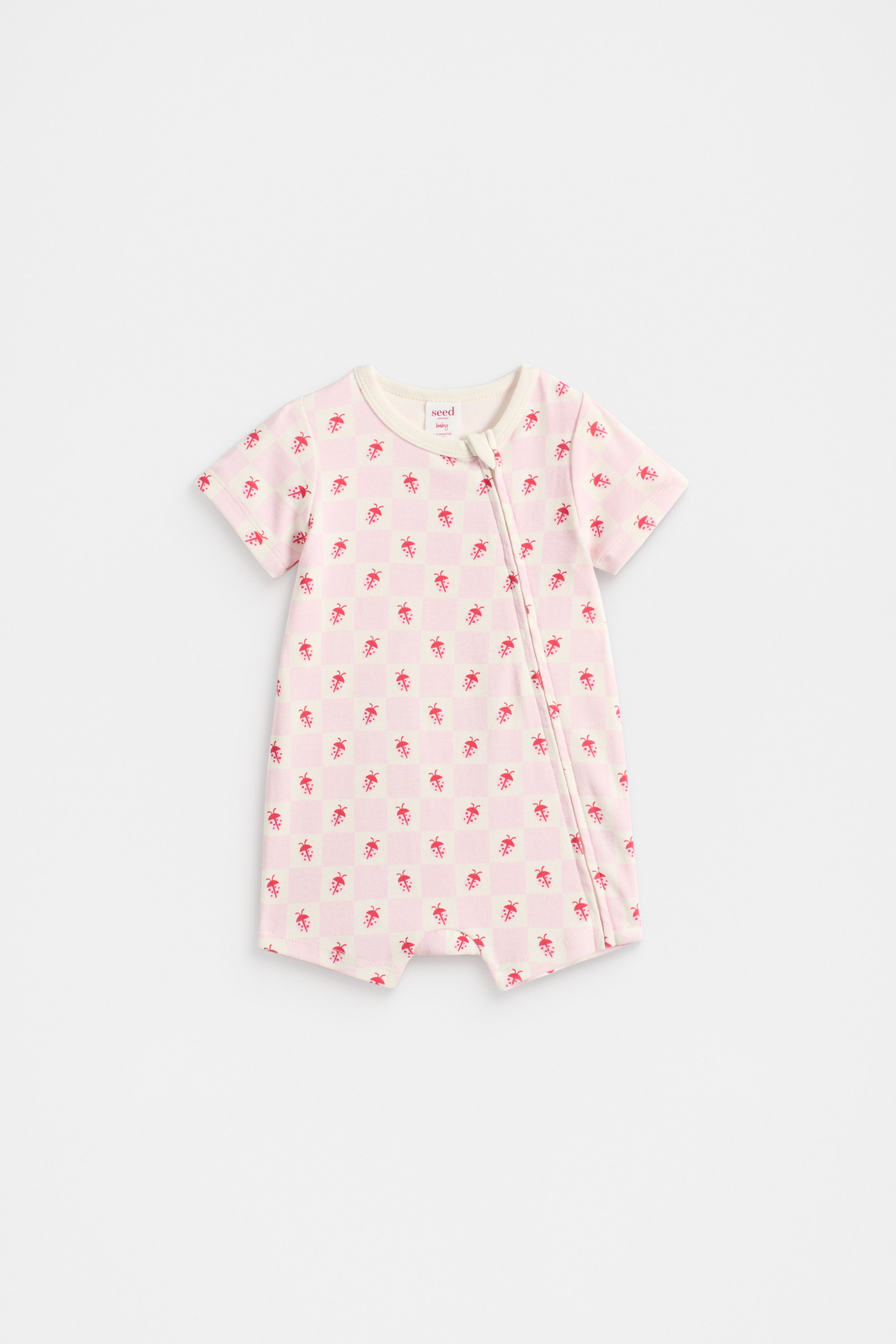 A sweet addition to their little wardrobe, this zip suit features a round neck and short sleeves. For fuss-free changing, it fastens with a two-way zip from top to bottom. This zip suit is crafted from a cotton rich knit for the most comfortable stretchy fit.